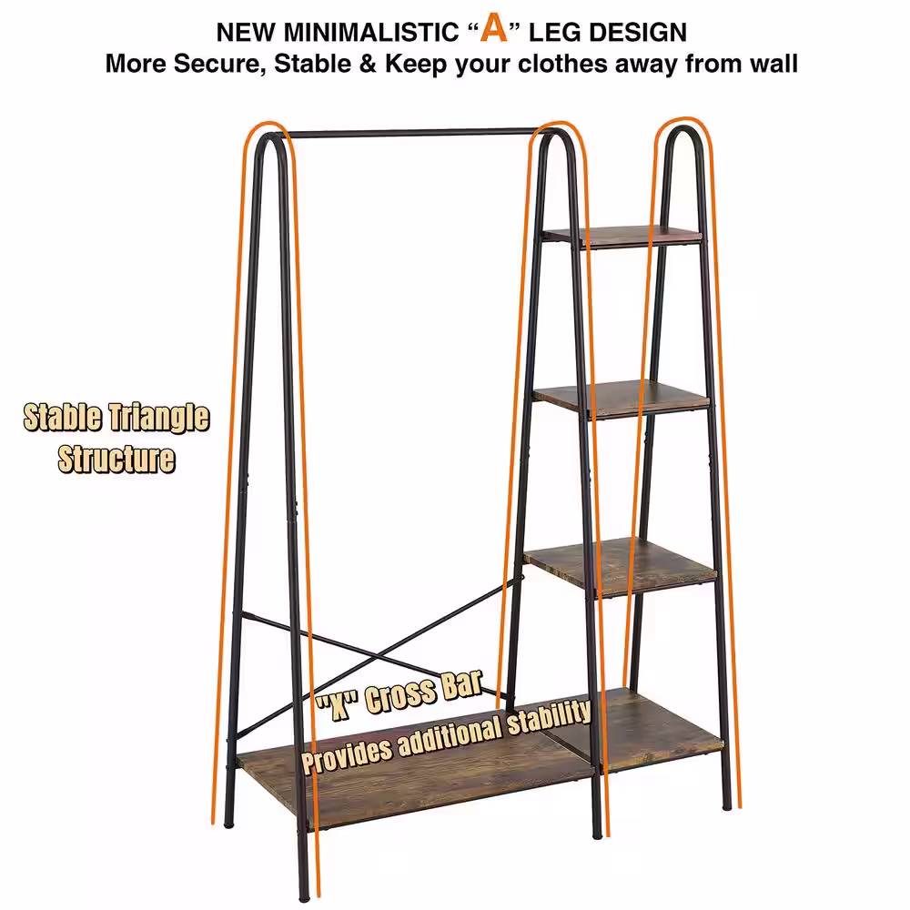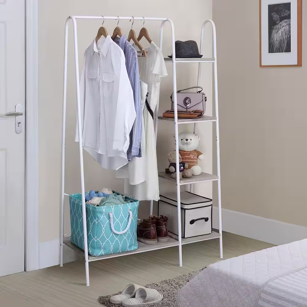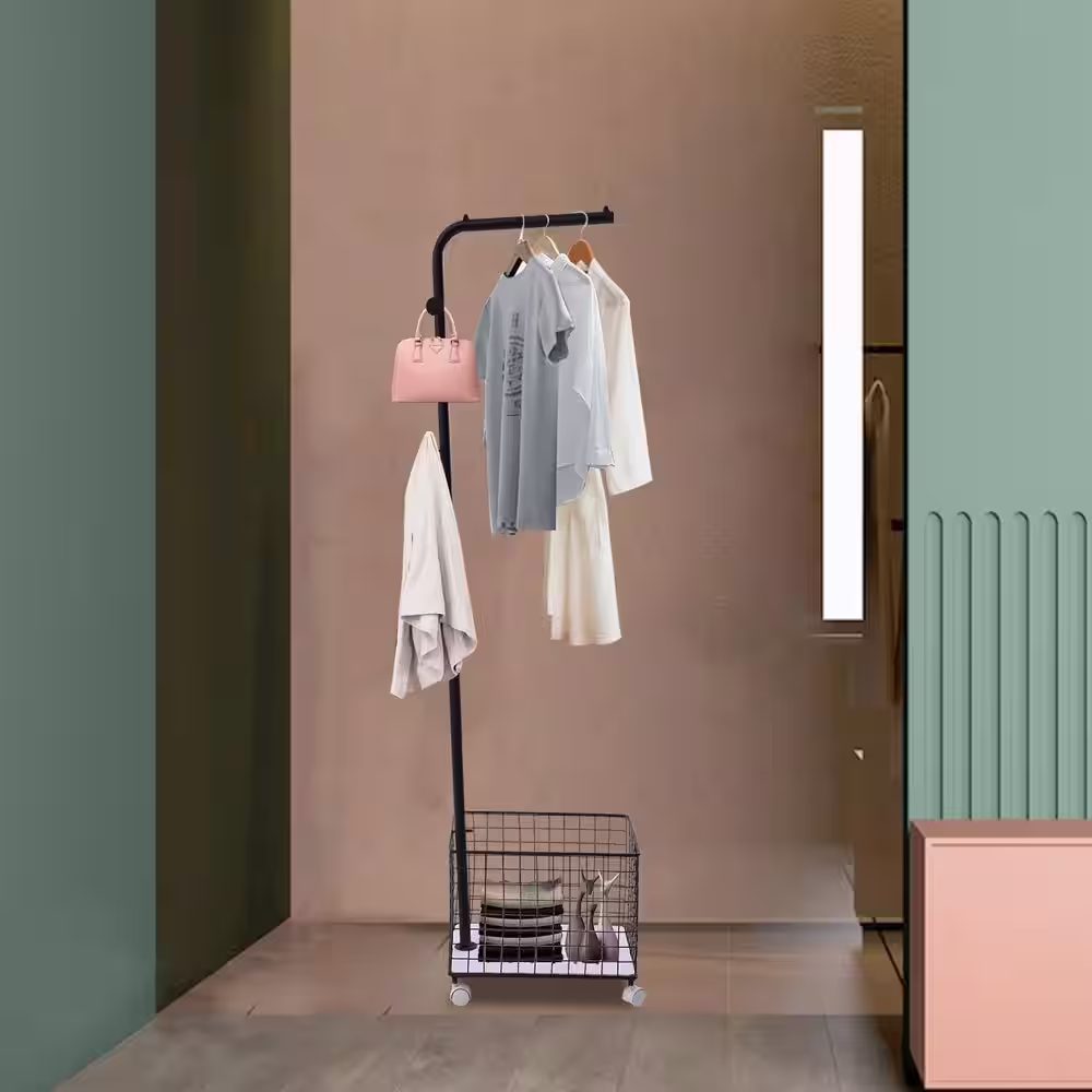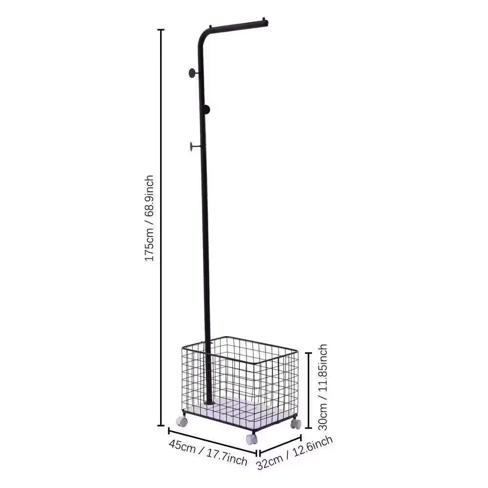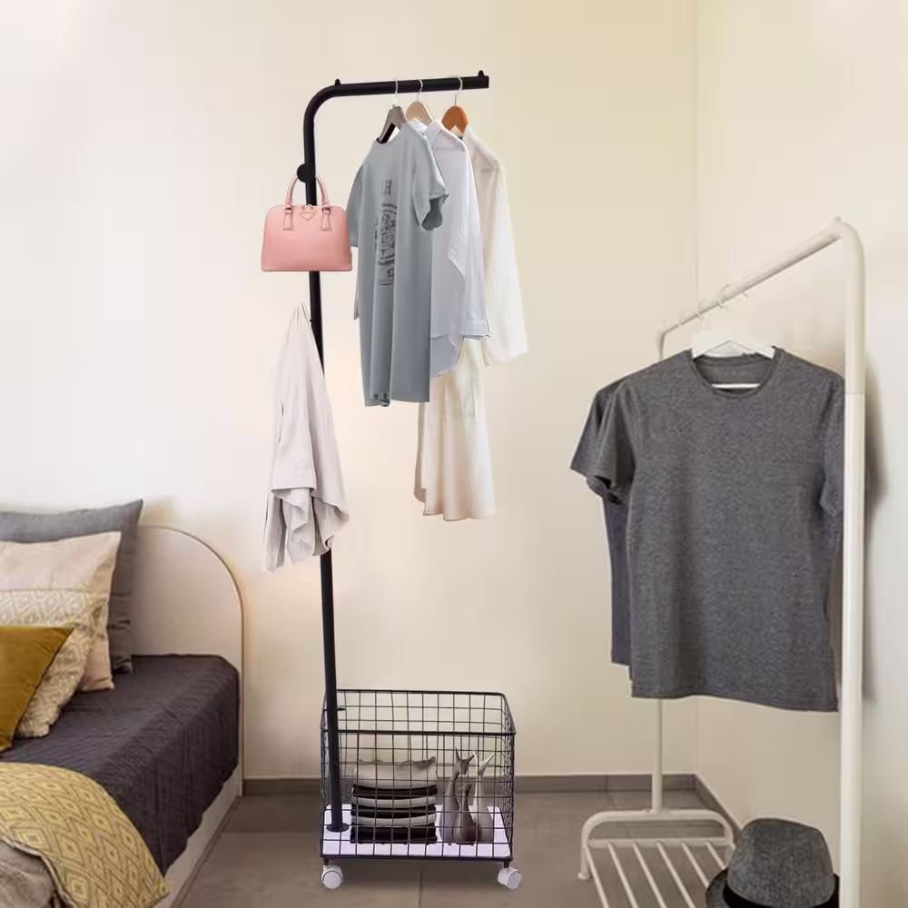 None Black Metal Clothes Rack with Storage Basket 17.7 in. W x 68.9 in. H