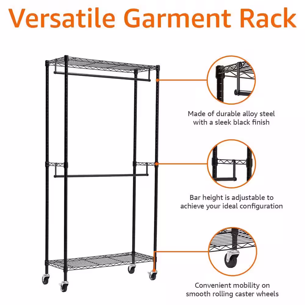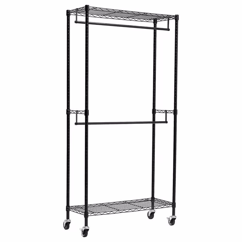 None Black Steel Garment Clothes Rack With Double Rod 36 in. W x 72 in. H