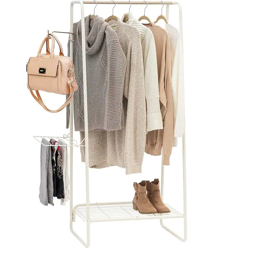 None White Metal Garment Clothes Rack Double Rods 28.5 in. W x 59.6 in. H
