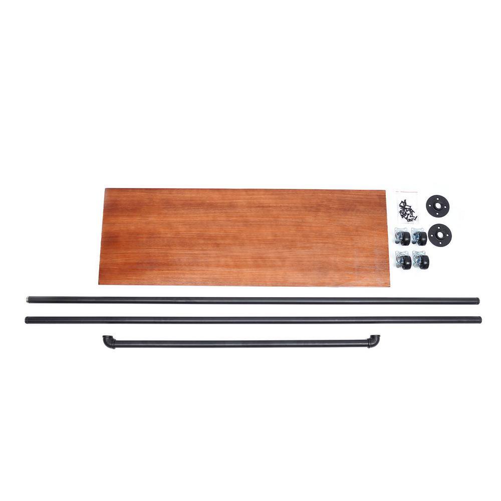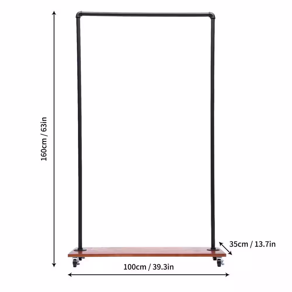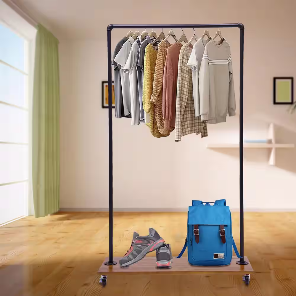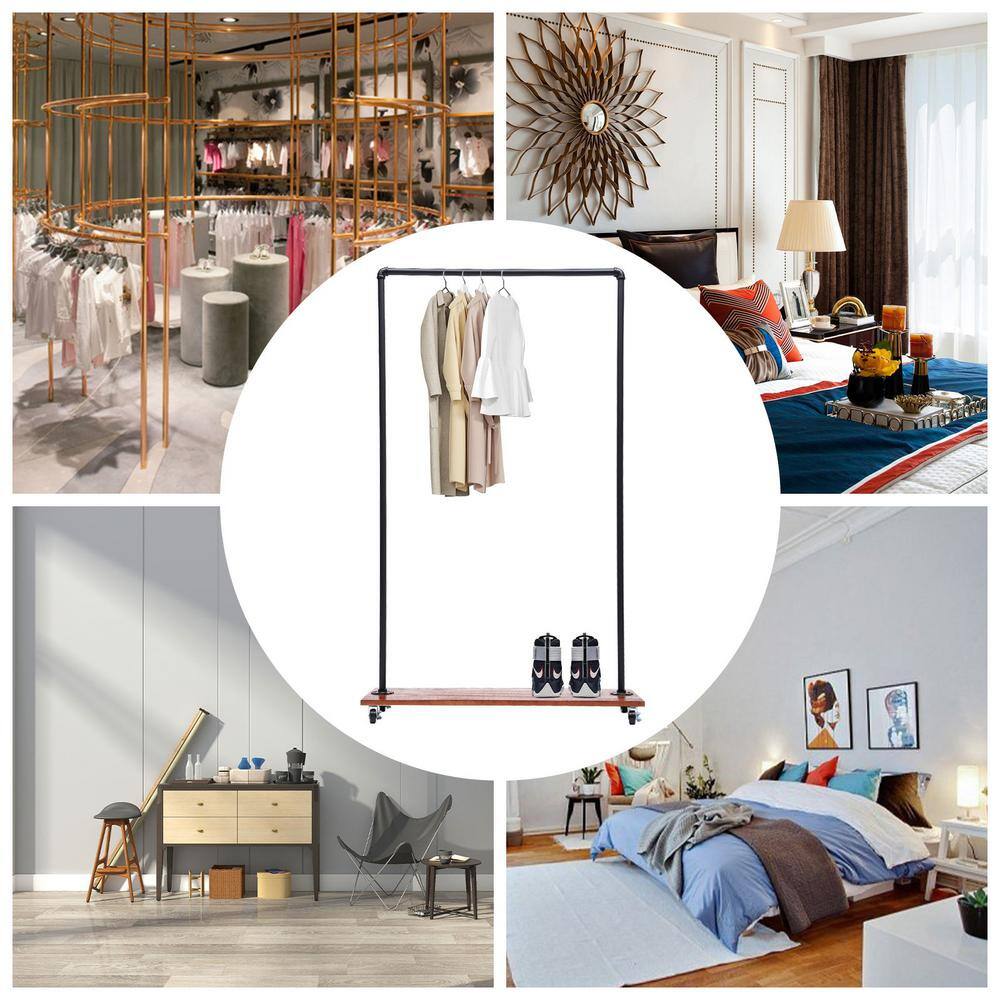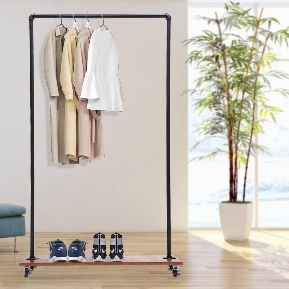 None Freestanding Rolling Black Iron Clothes Rack Display Stand with Top Rail & Lower Shelf 39.3 in. W x 63 in. H