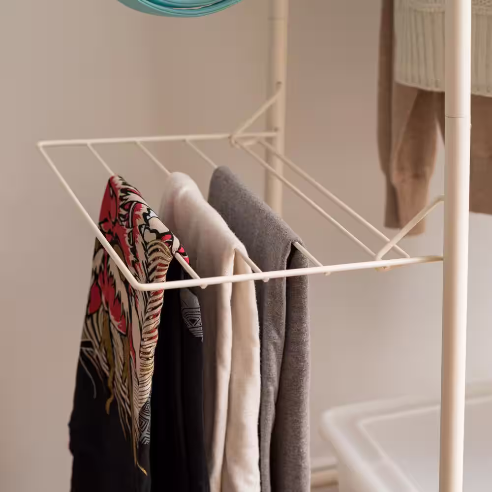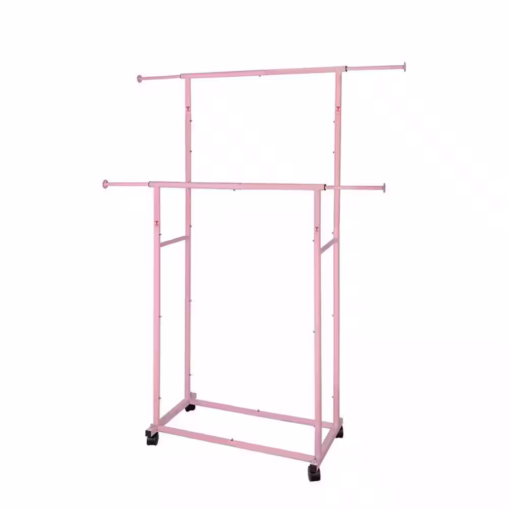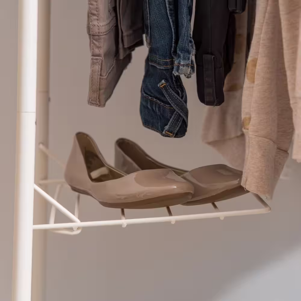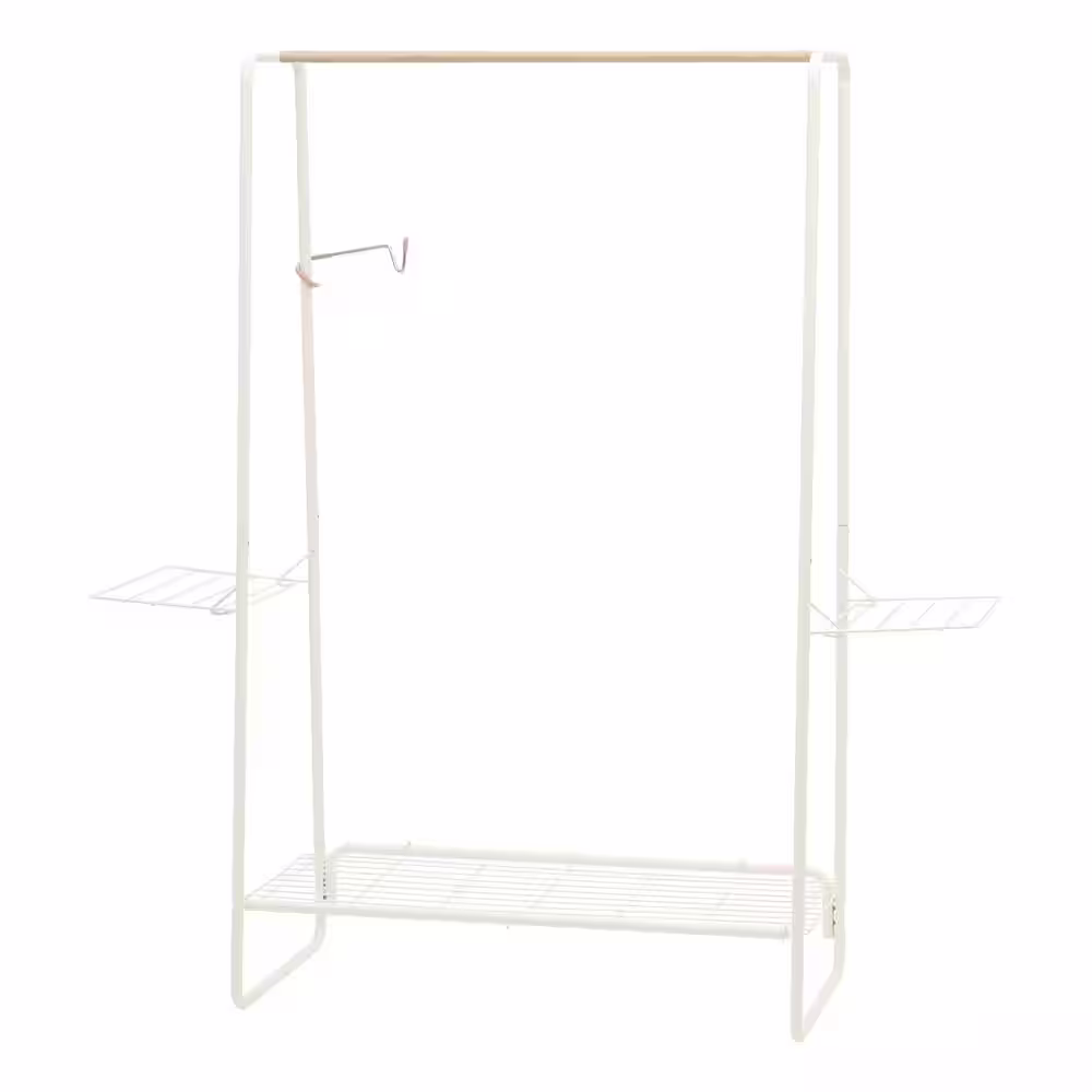 None White Metal Garment Clothes Rack With Double Rod 38 in. W x 62 in. H