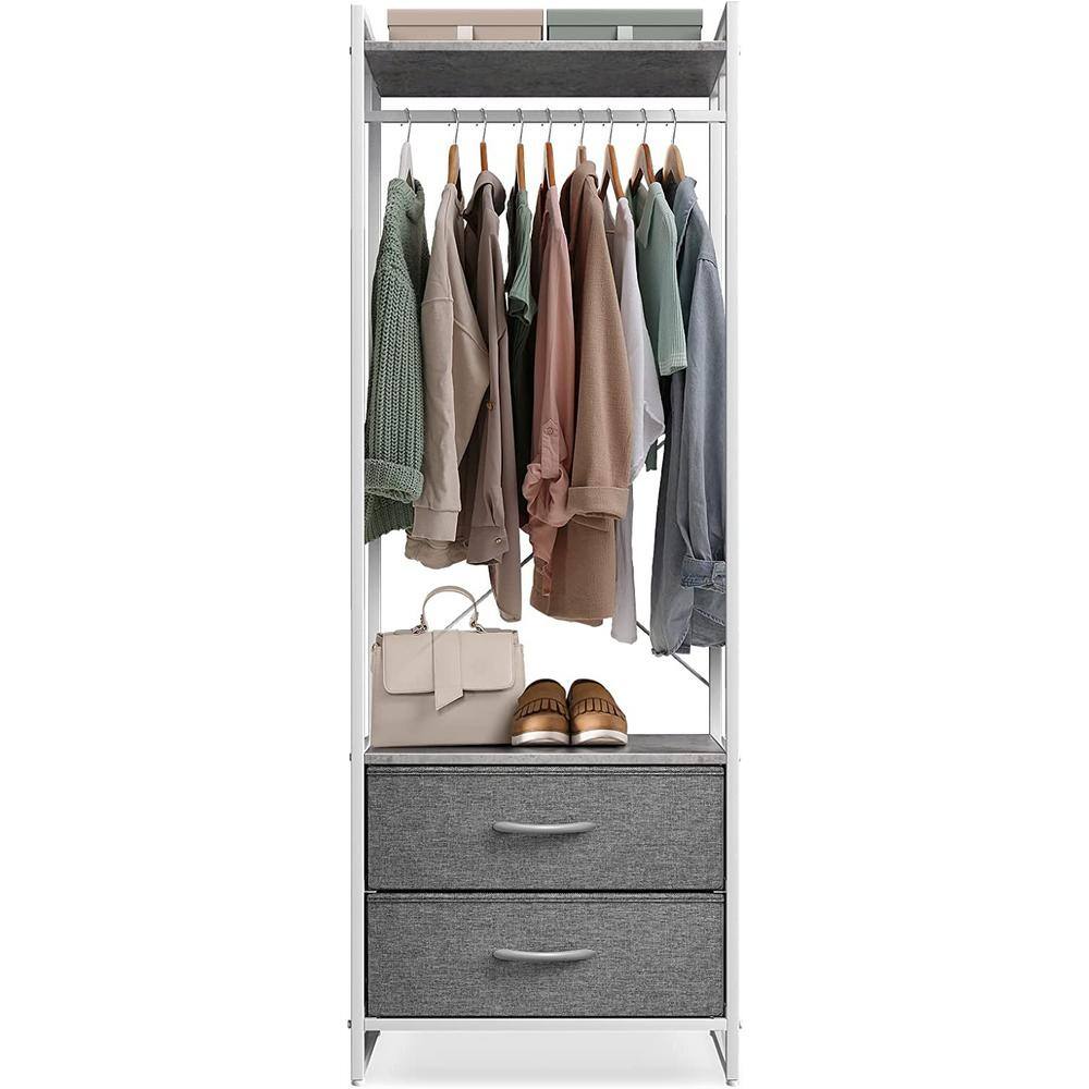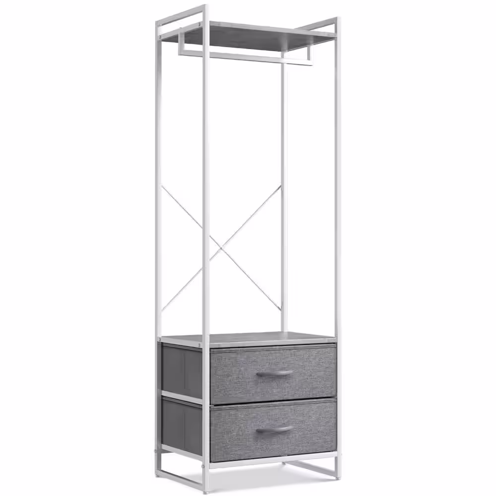 Sorbus Gray Steel Clothes Rack with Fabric Drawers and Wood Top 15.25 in. W x 70 in. H