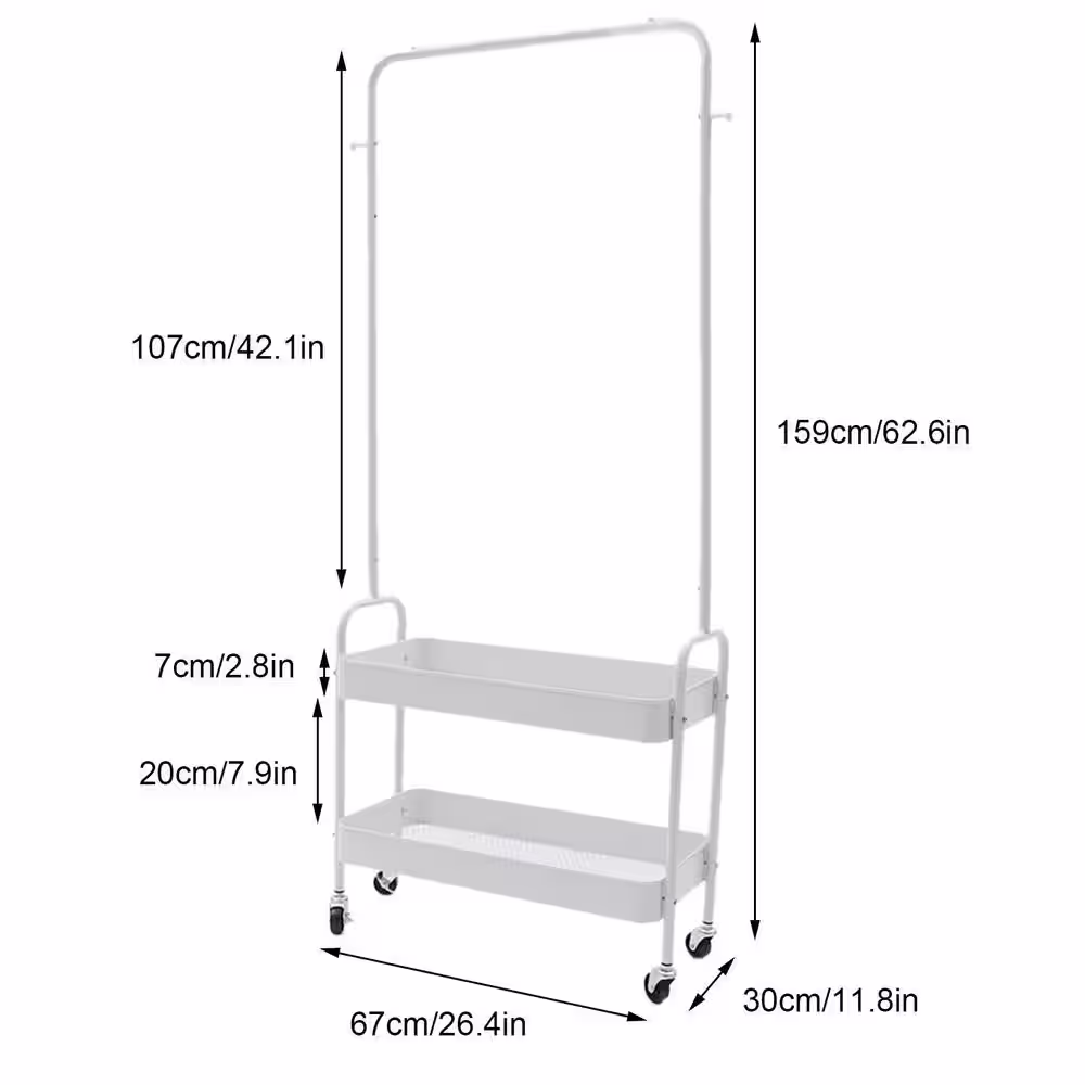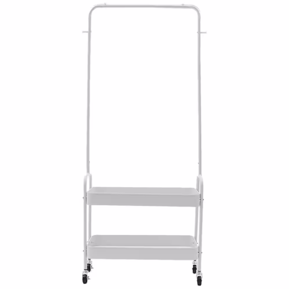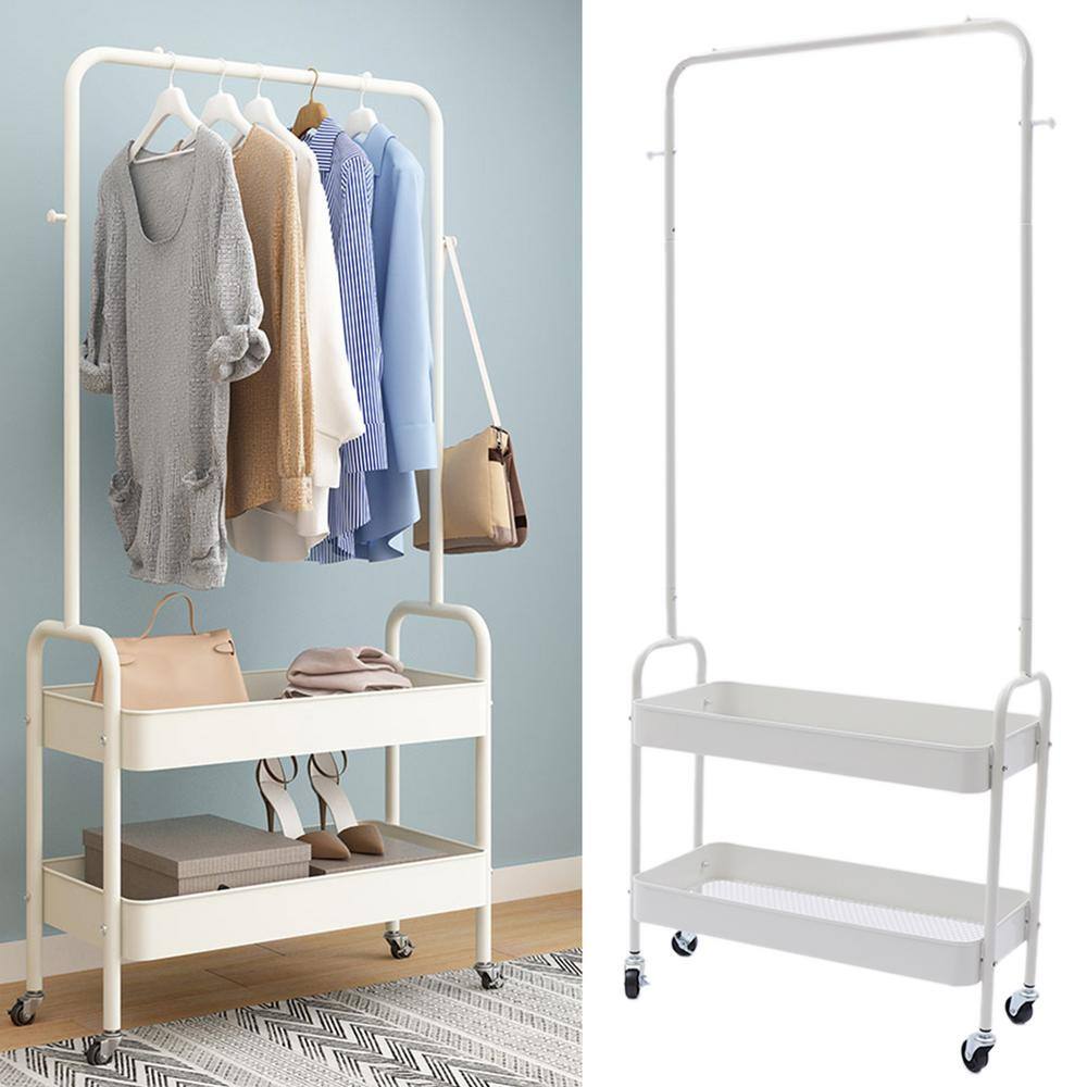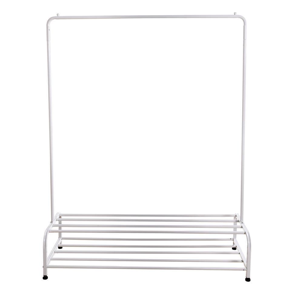 None White Floor Standing Carbon Steel Clothes Rack with Storage Basket