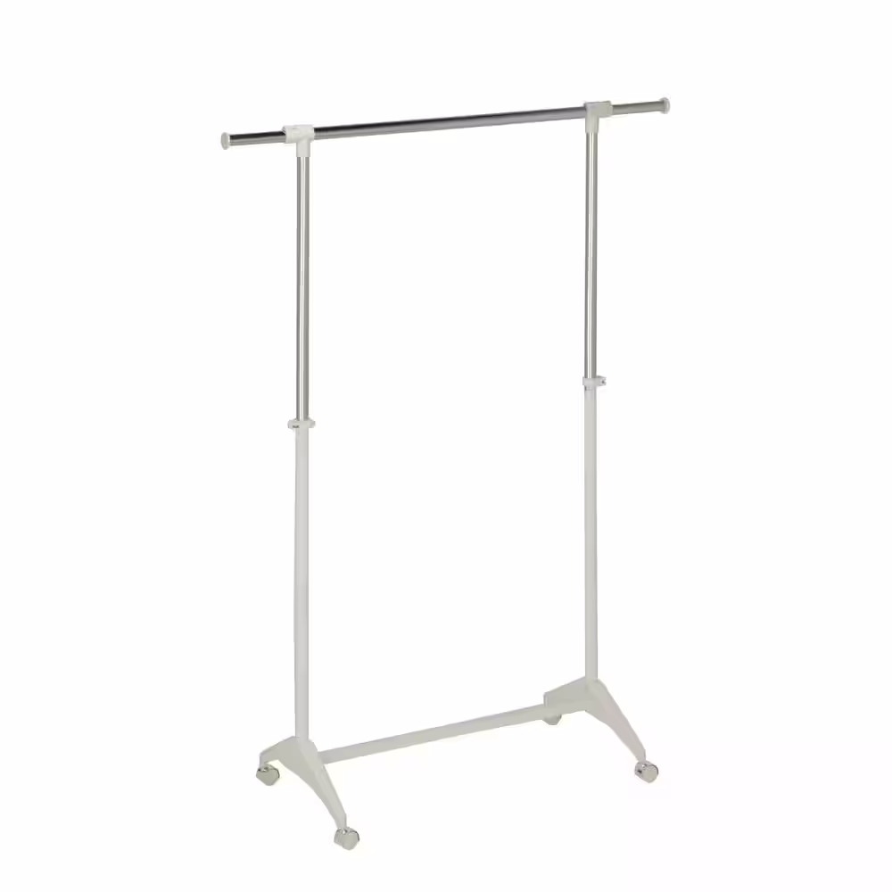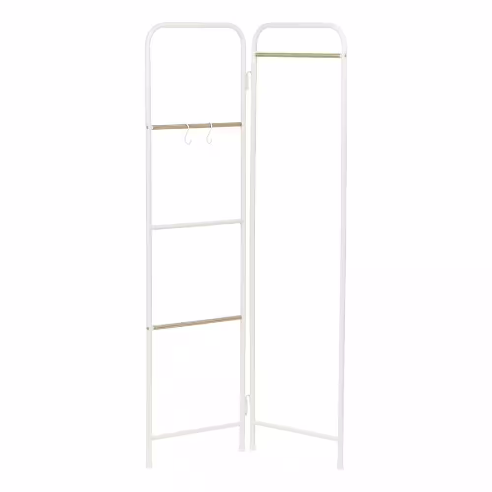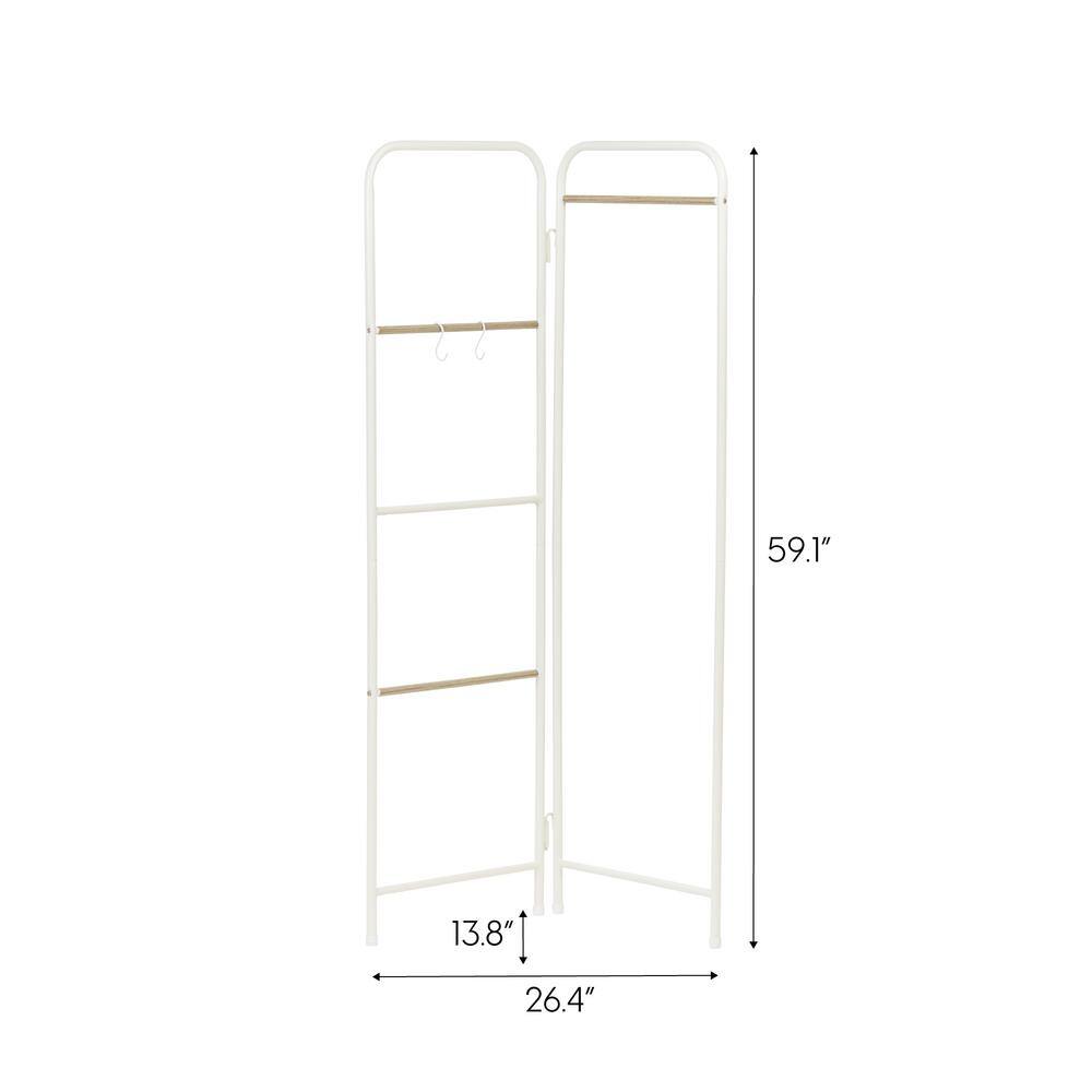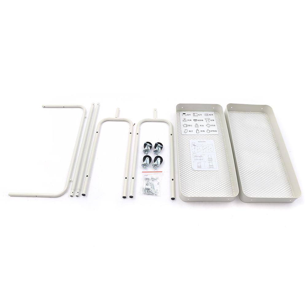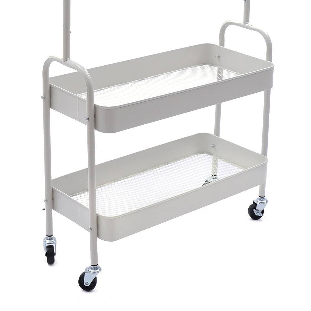 None White Floor Standing Carbon Steel Clothes Rack with Storage Basket