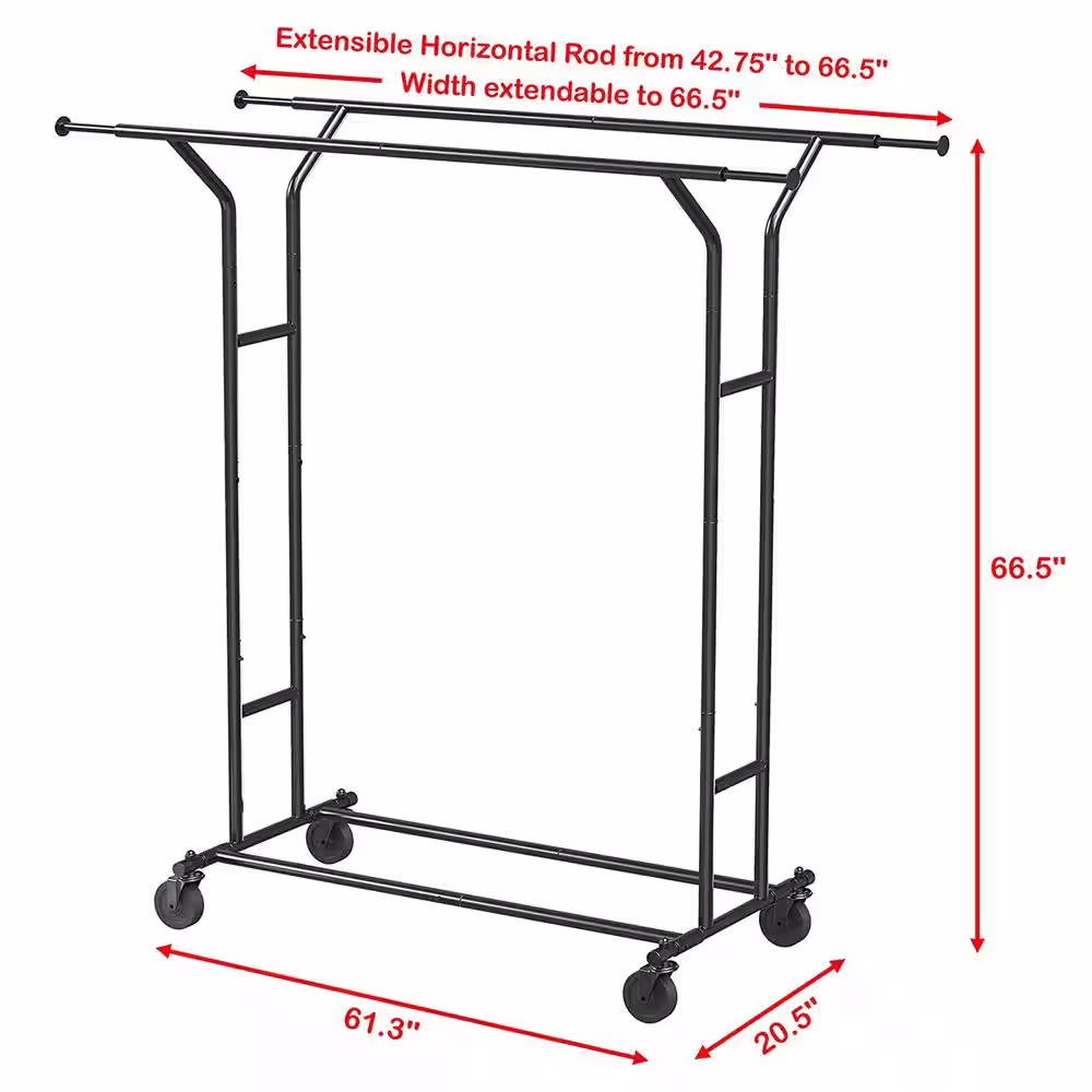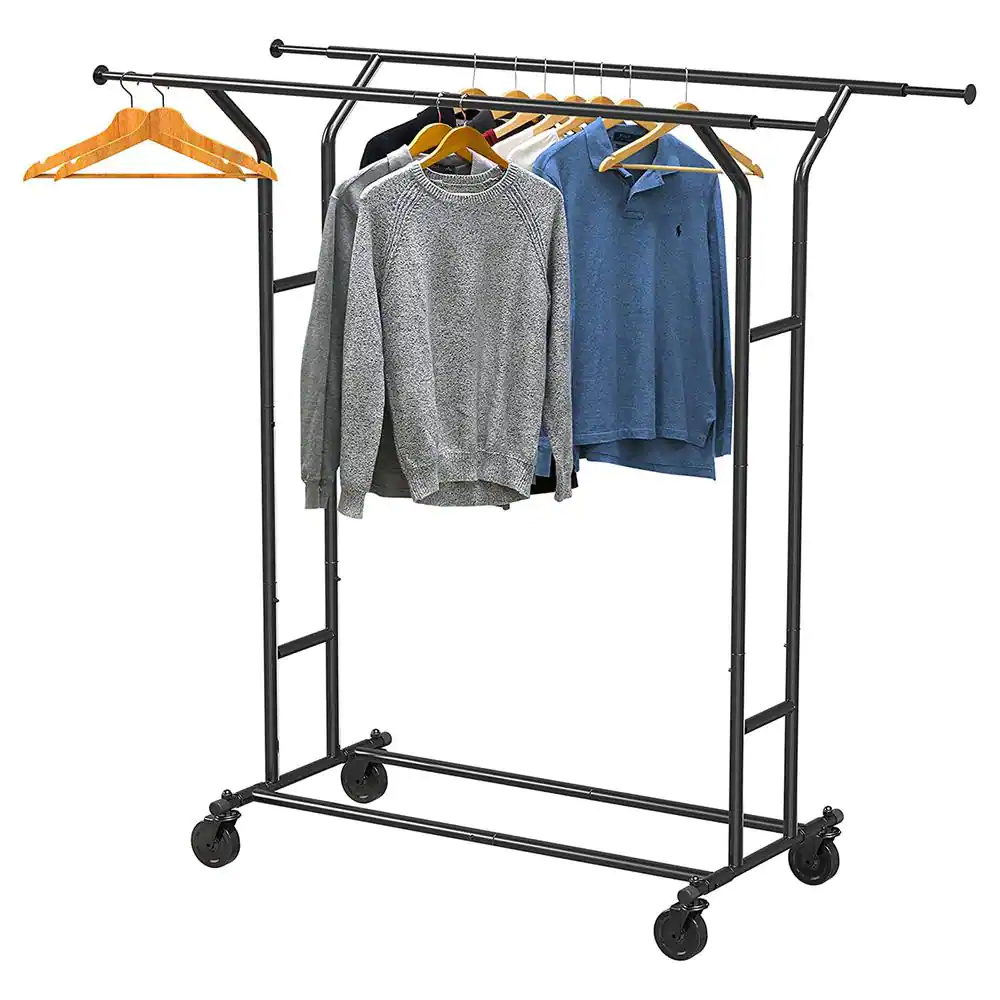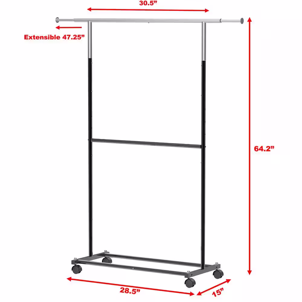 None Black Alloy Steel Garment Clothes Rack Double Rods 30.5 in. W x 64.2 in. H