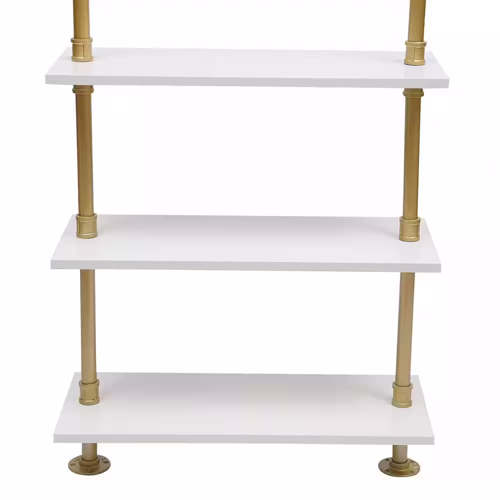 None Gold Iron Wall Mounted Industrial Pipe Clothes Rack with 3 shelves 23.62 in. W x 78.74 in. H