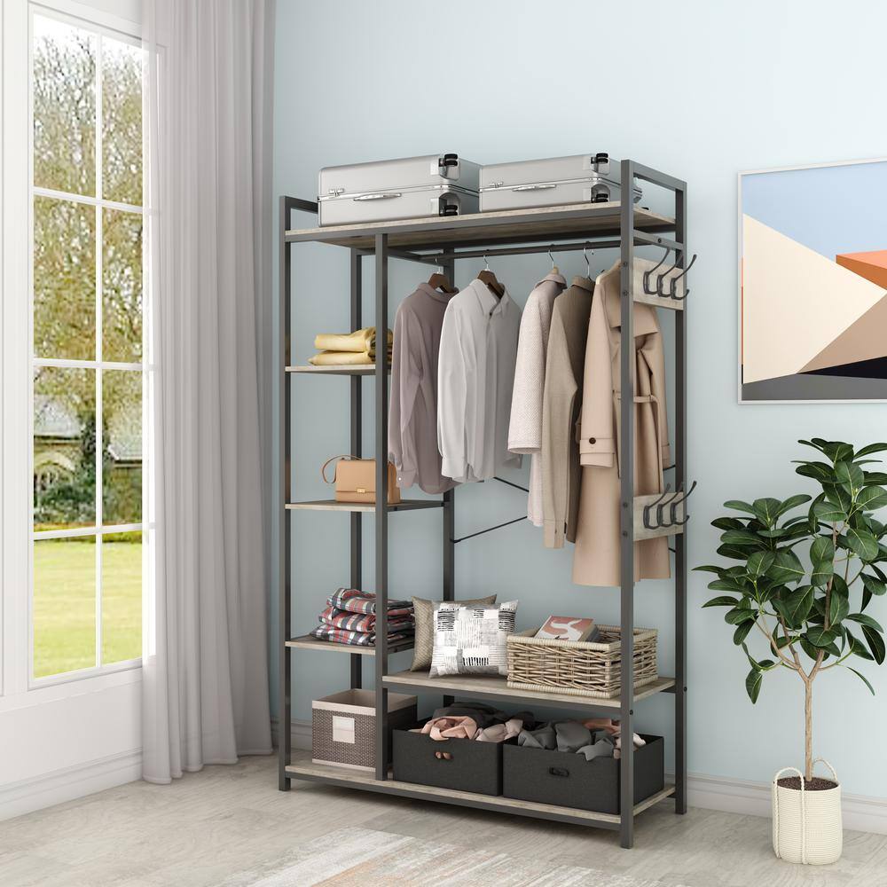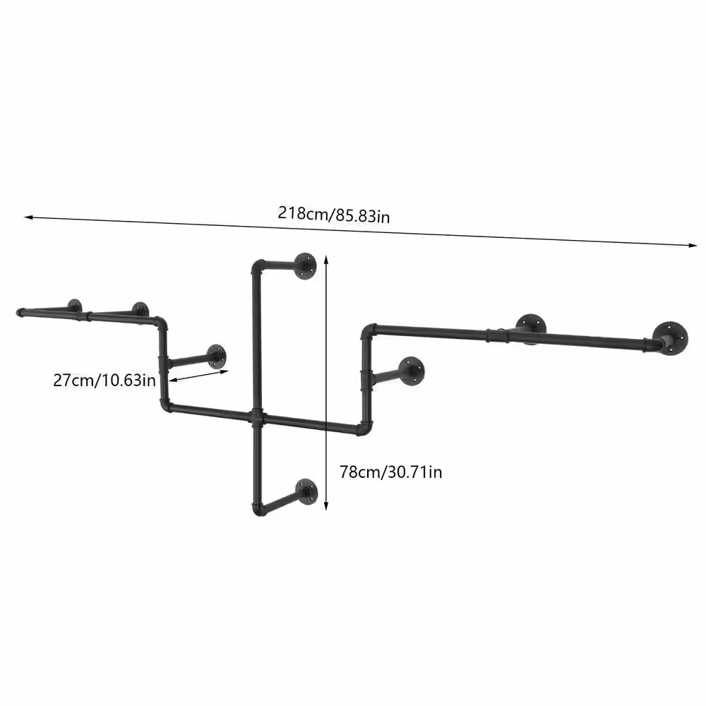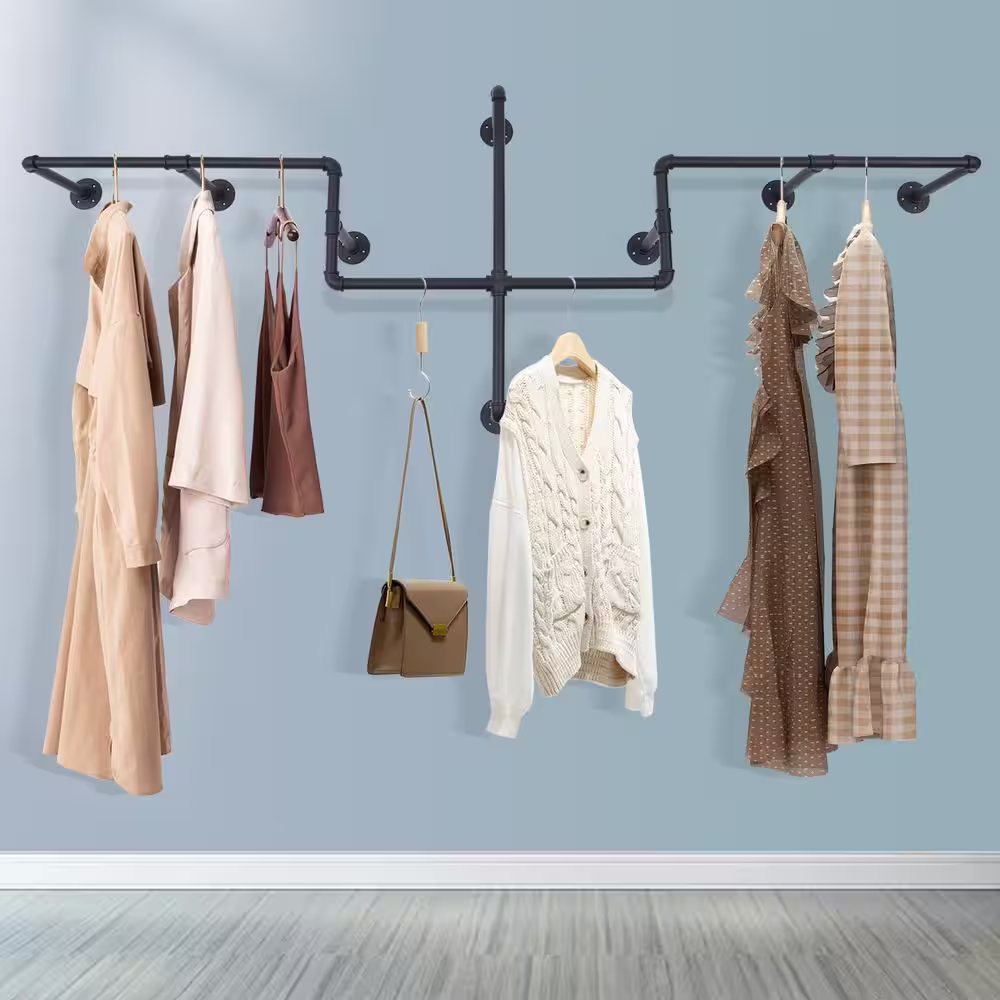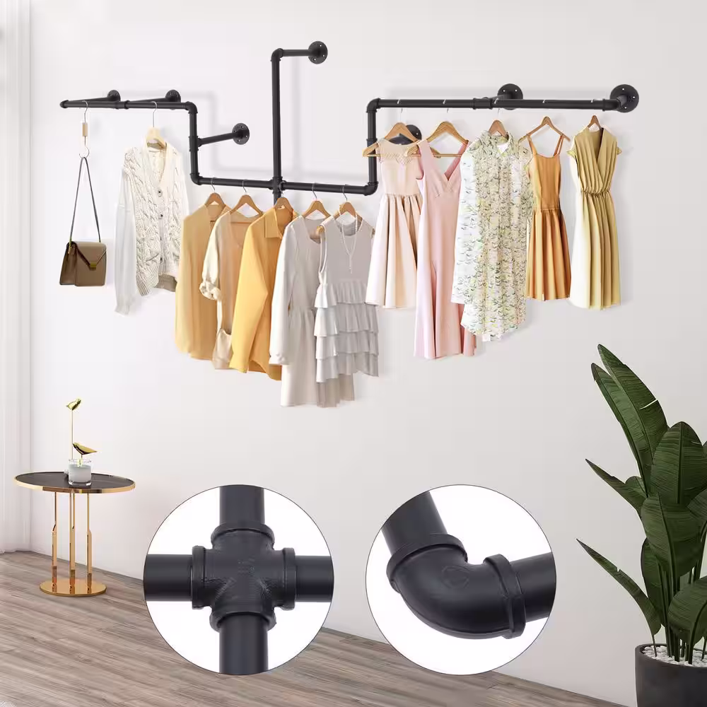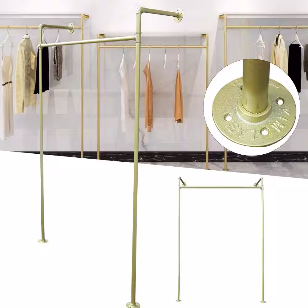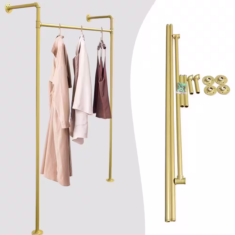 None Gold Iron Clothes Rack Hanging Rod Pipe Wall Mounted Garment Rack 47.2 in. W x 66.9 in. H