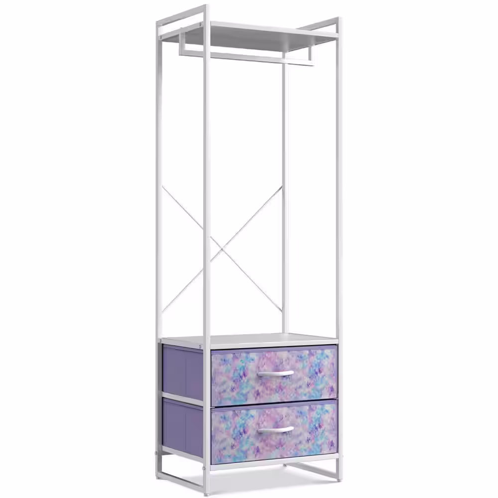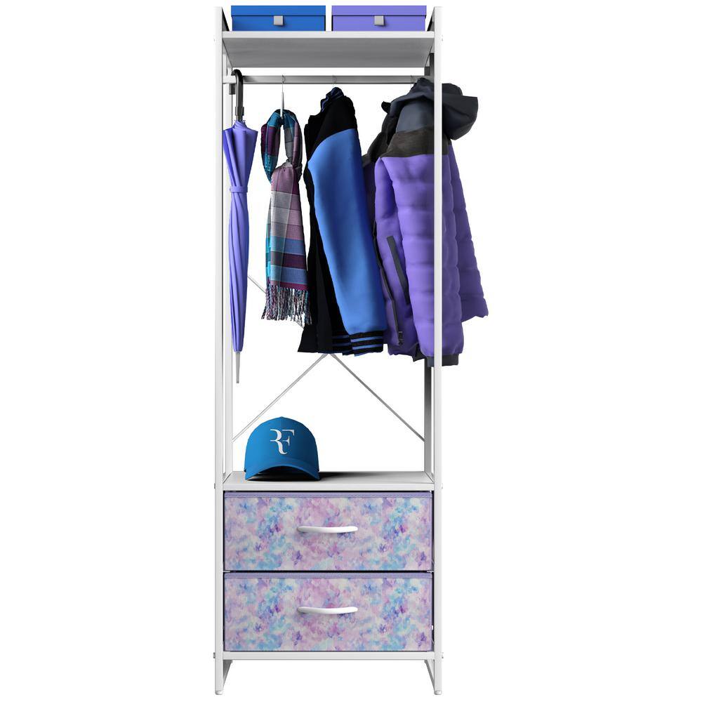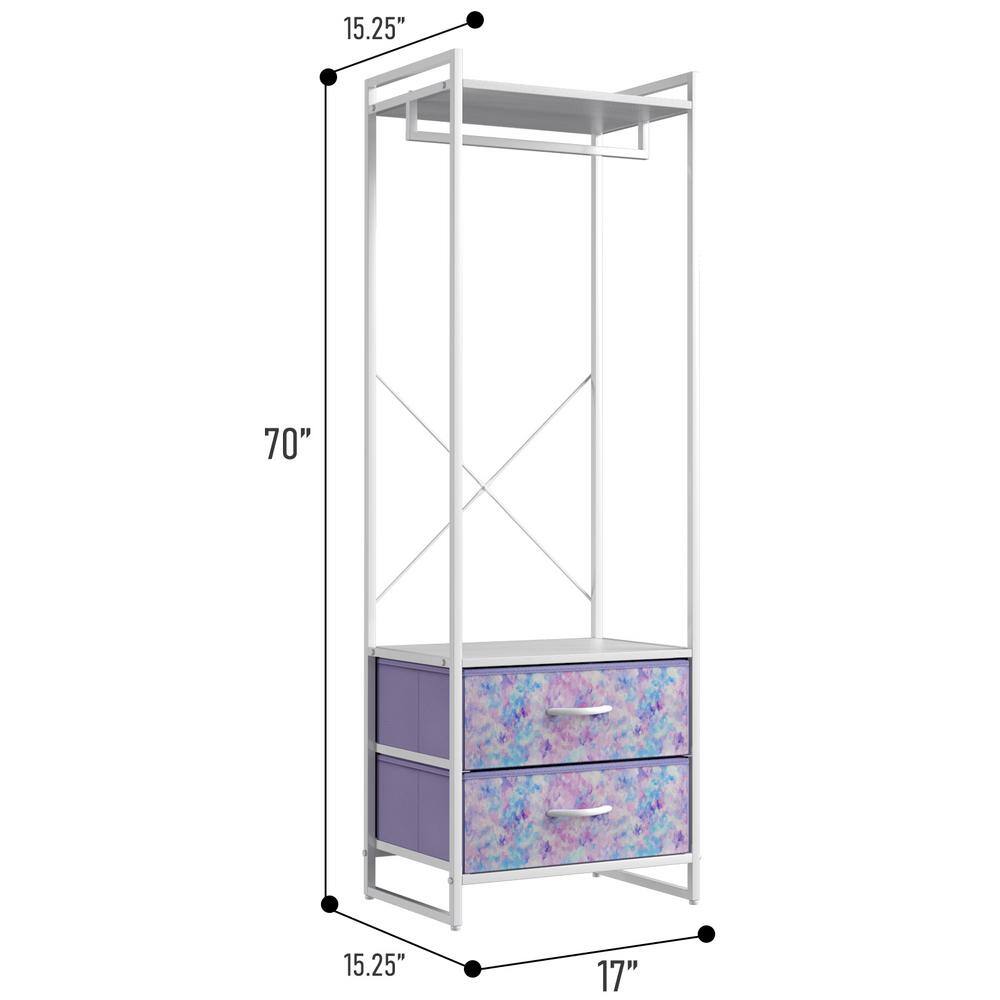 Sorbus Tie-Dye Purple Steel Clothes Rack with Fabric Drawers and Wood Top 15.25 in. W x 70 in. H