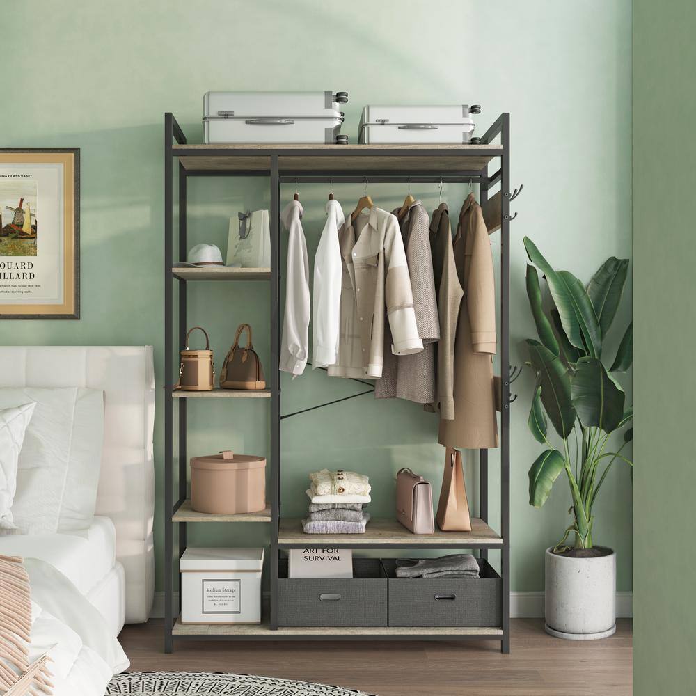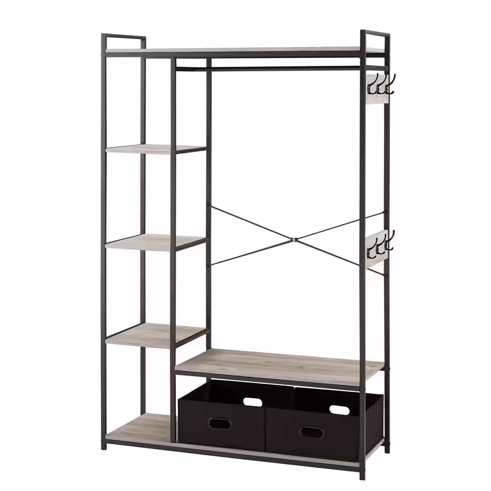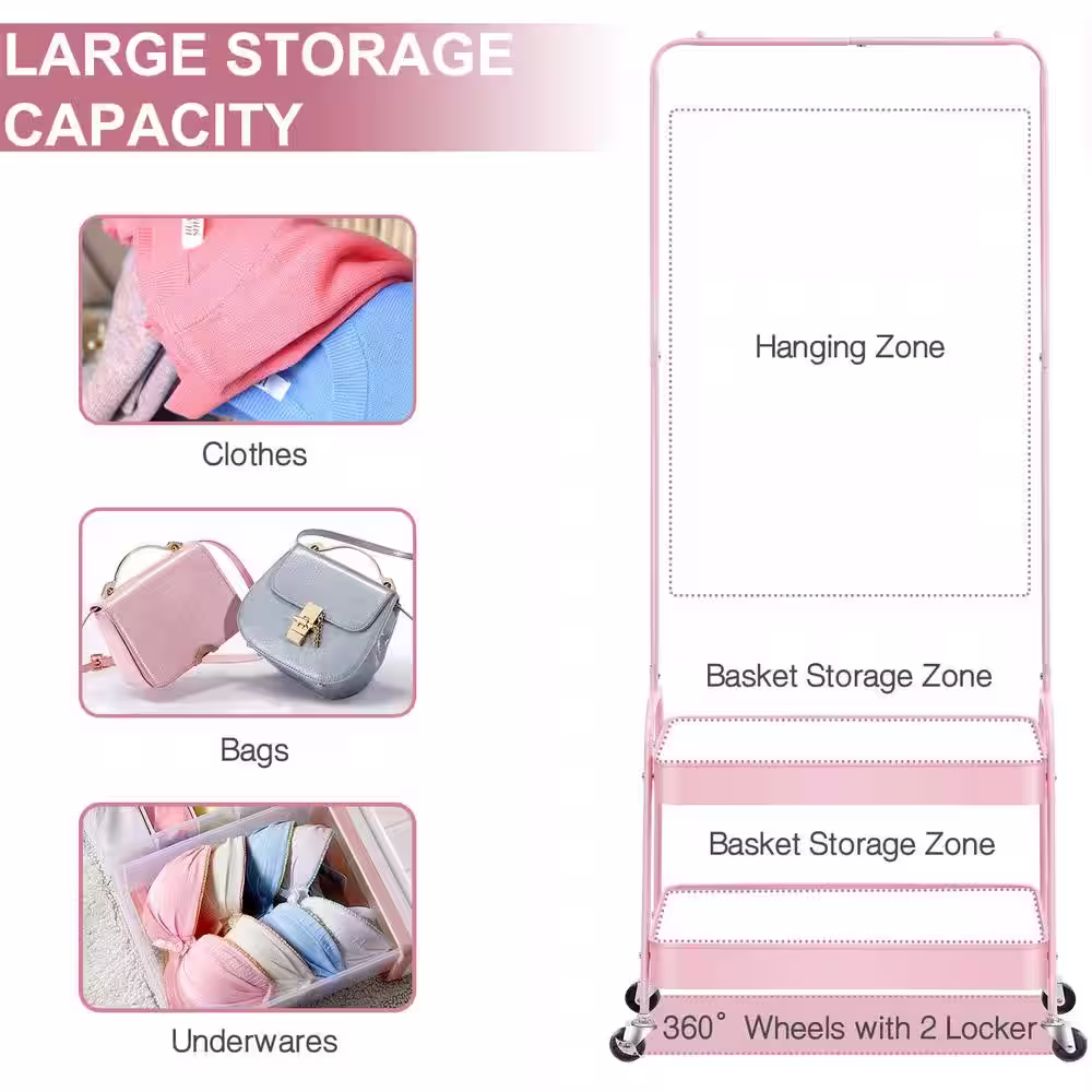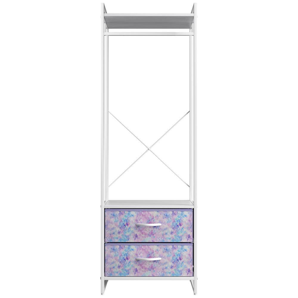 Sorbus Tie-Dye Purple Steel Clothes Rack with Fabric Drawers and Wood Top 15.25 in. W x 70 in. H
