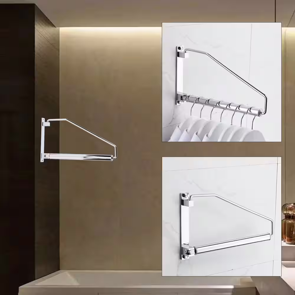 None Rotatable Silver Brass Wall Mounted Clothes Rack 12.2 in. x 7.08 in.