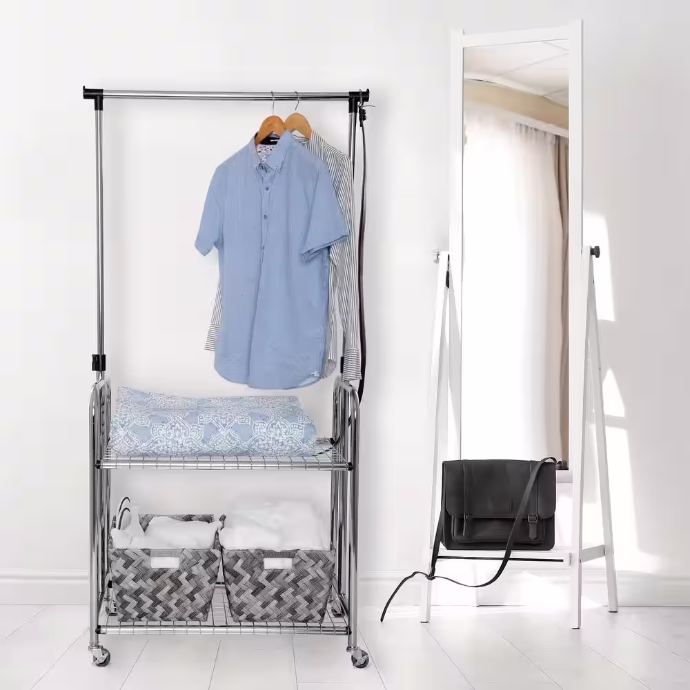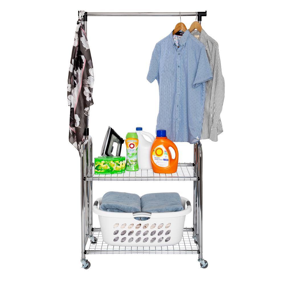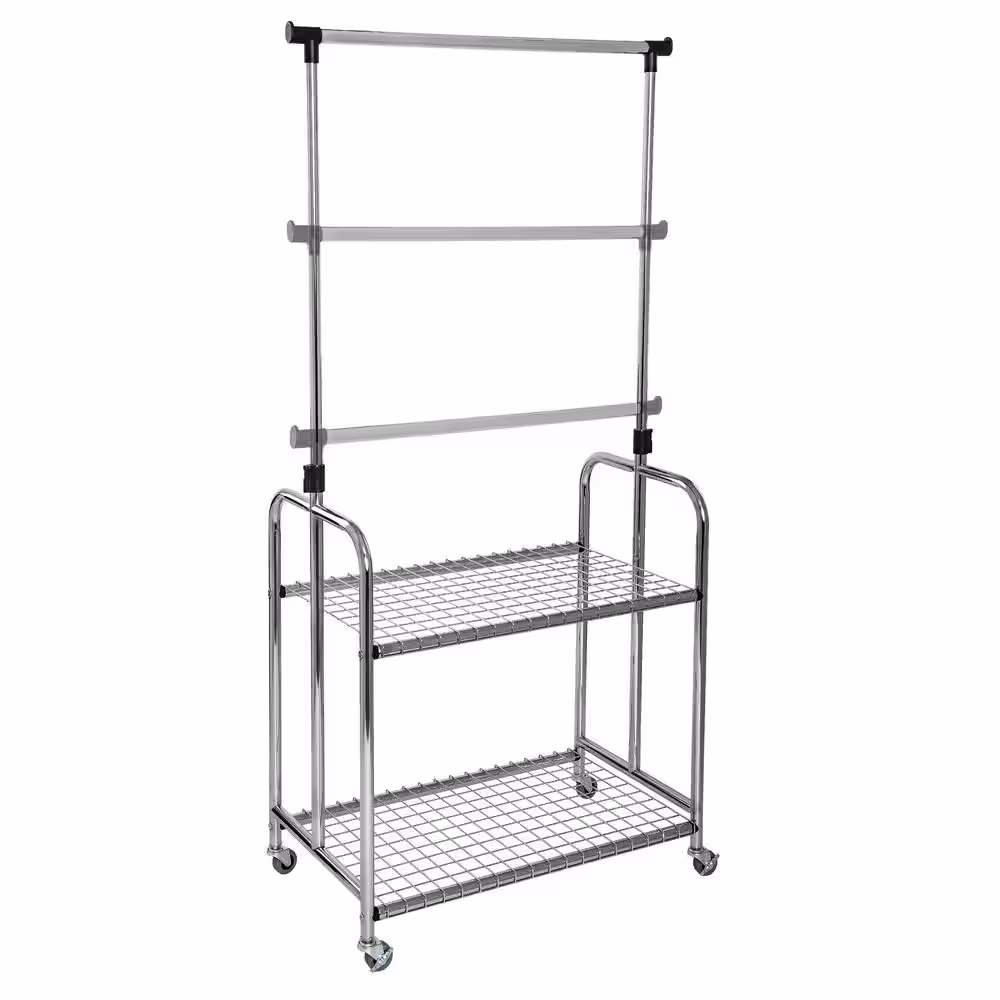 Honey-Can-Do Black/Natural Steel Clothes Rack with Shoe Shelf 29.5 in. W x 61 in. H