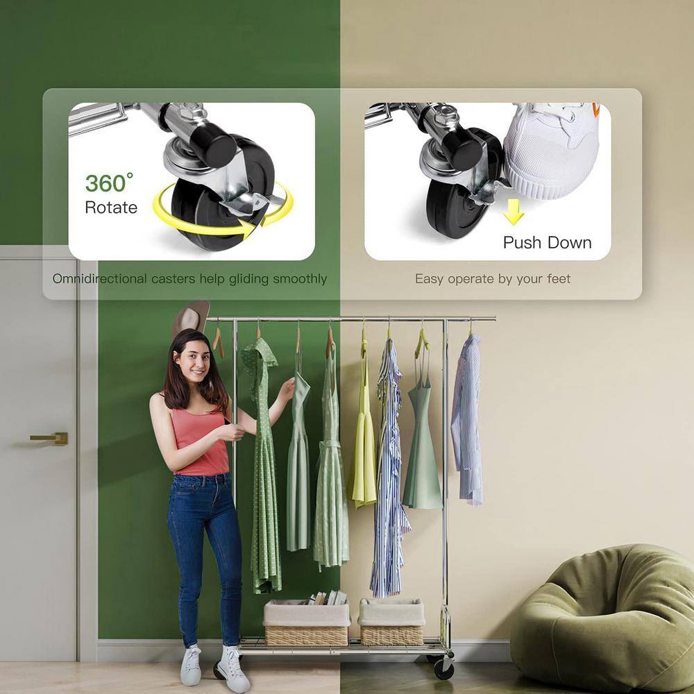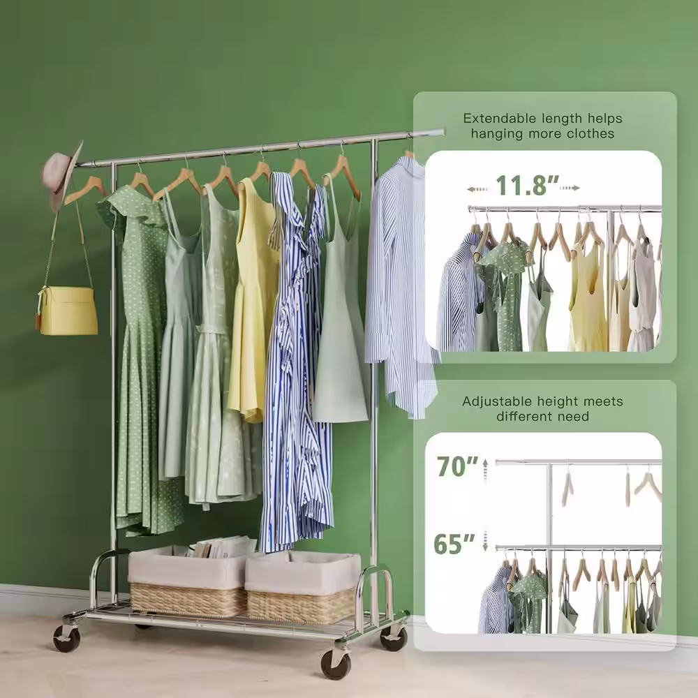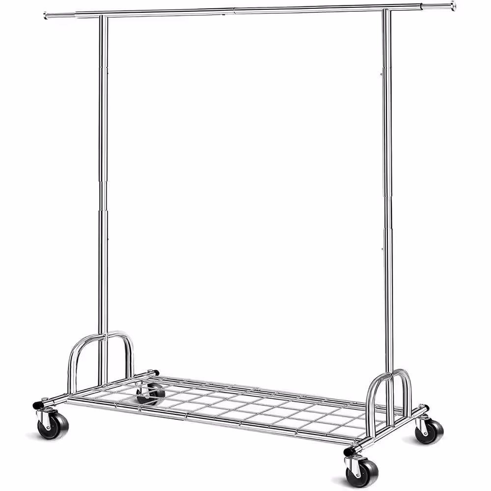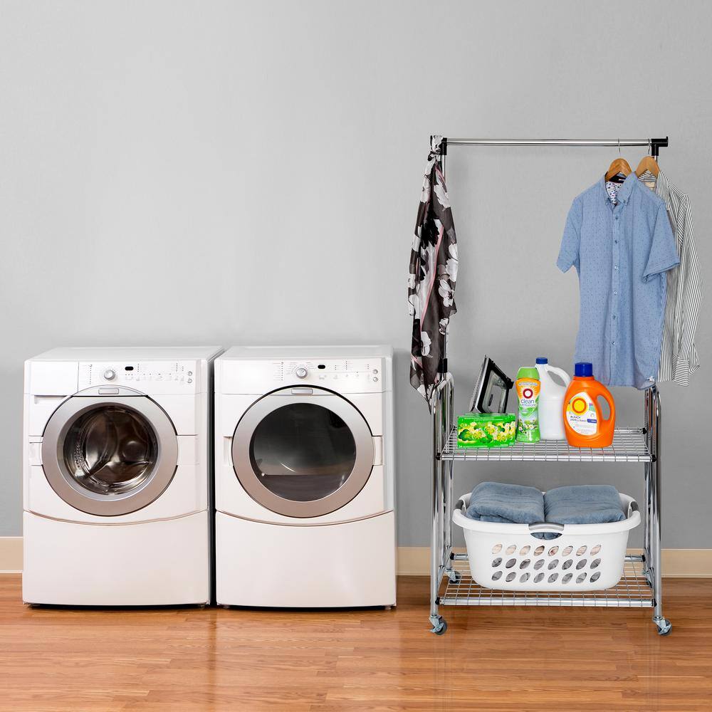 Honey-Can-Do Black/Natural Steel Clothes Rack with Shoe Shelf 29.5 in. W x 61 in. H