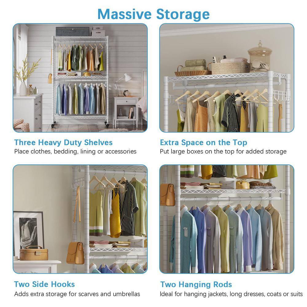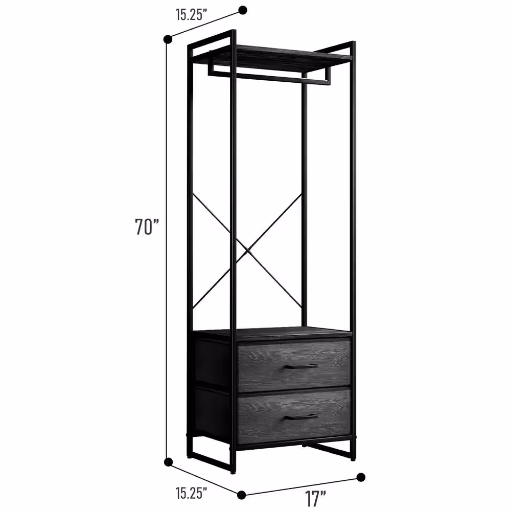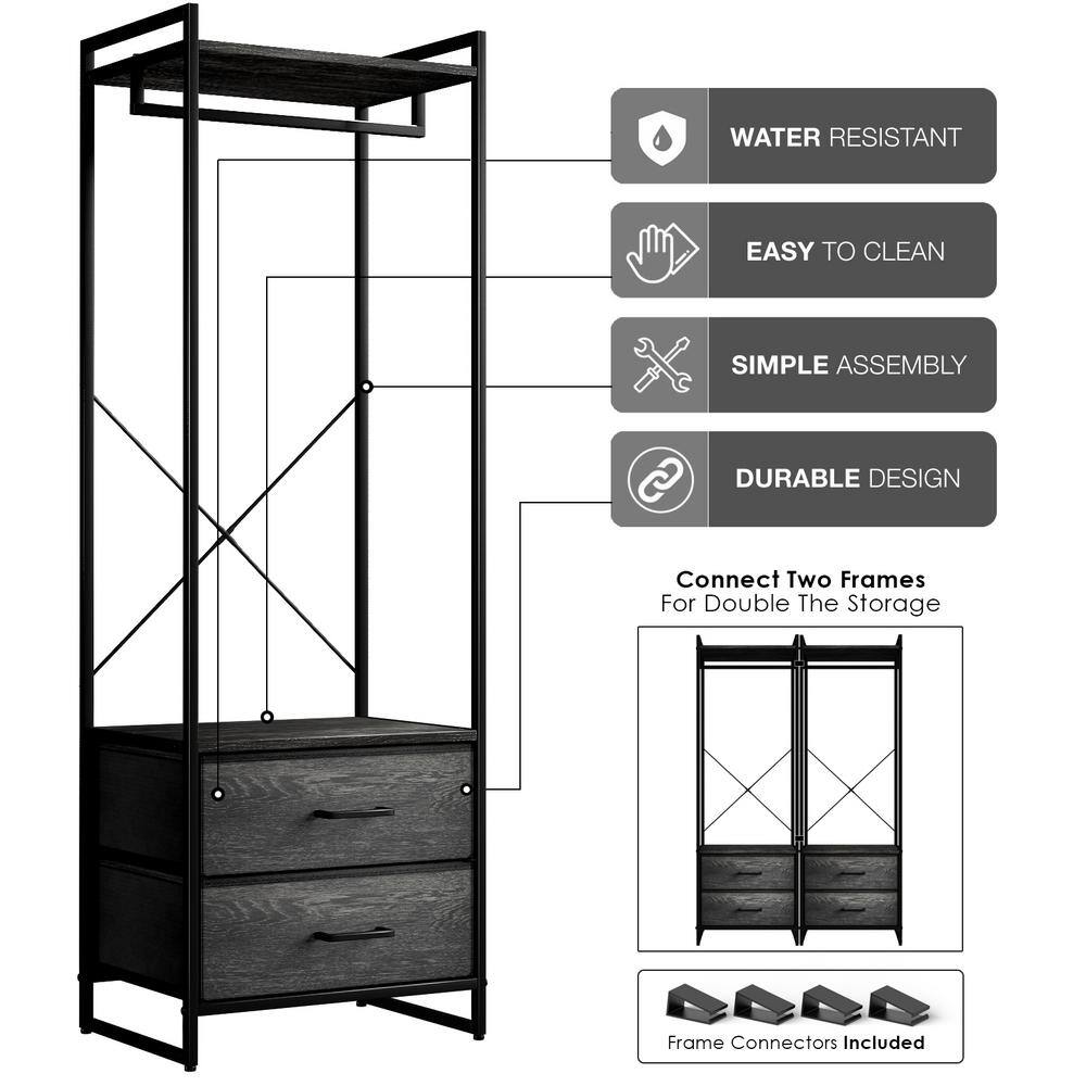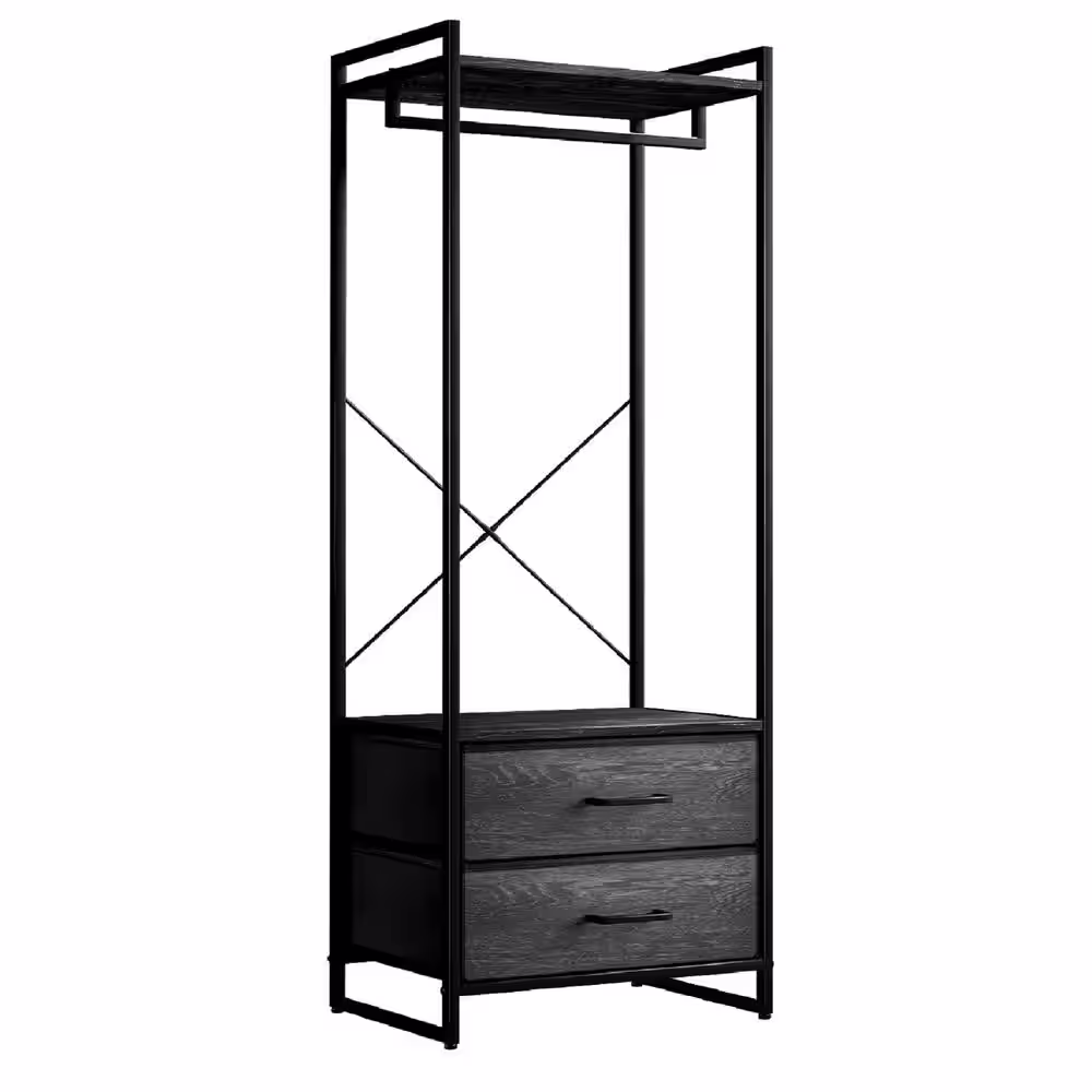 Sorbus Black Steel Clothes Rack with Fabric Drawers and Wood Top 15.25 in. W x 70 in. H