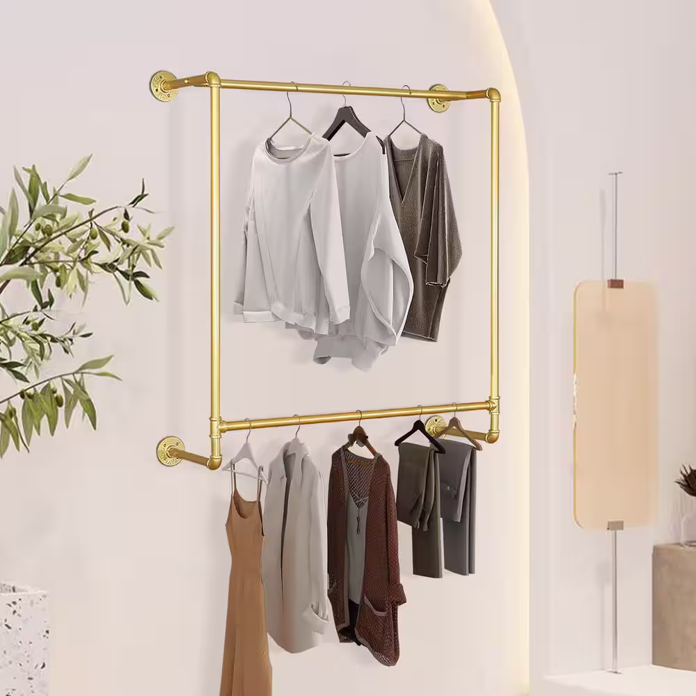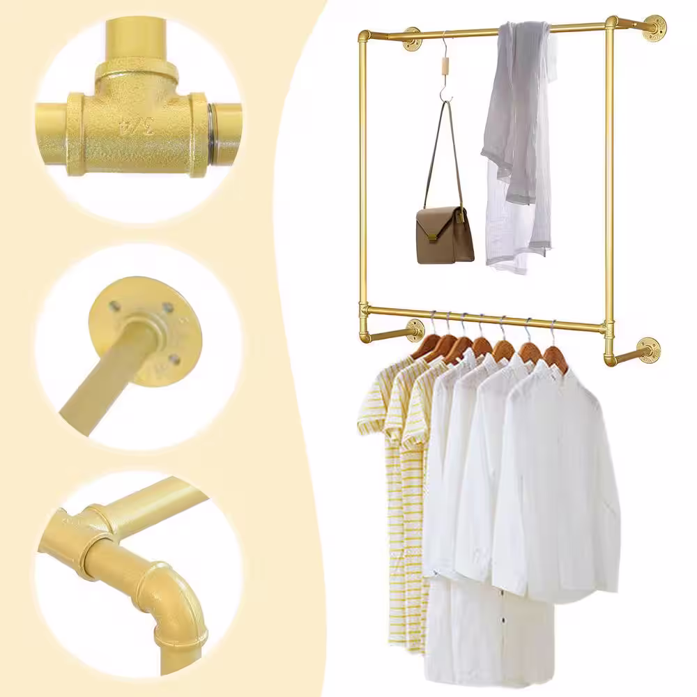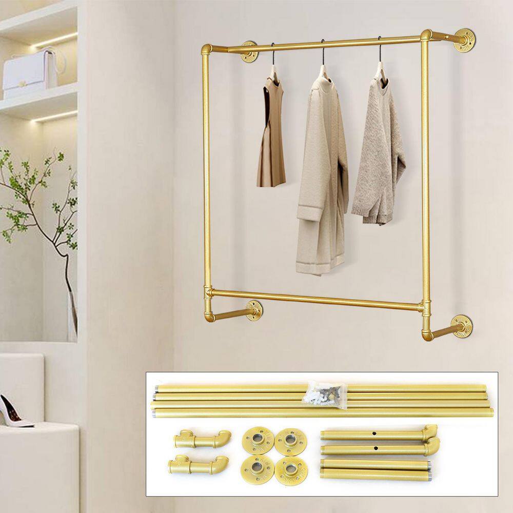 None Free-Standing Gold Metal Retail Bedroom Display Hanging Clothes Rack Organizer 47 in. W x 63 in. H
