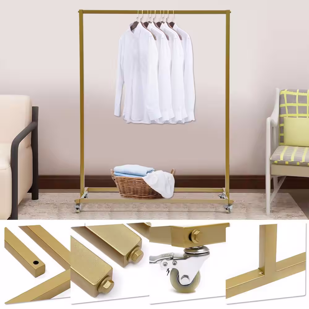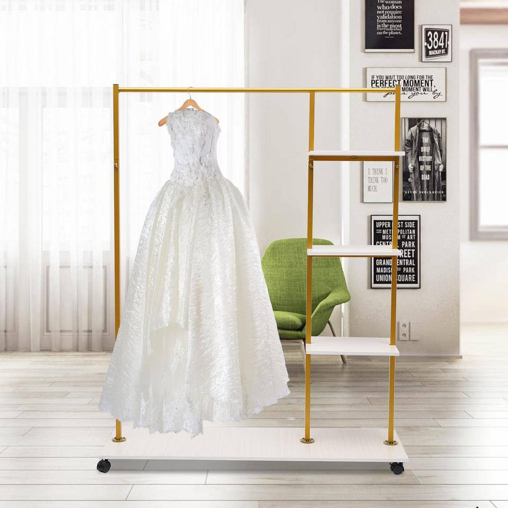 None Gold Metal Clothes Rack Home Storage Garment Stand with 4-Tier Shelves & Universal wheel 47 in. W x 59 in. H