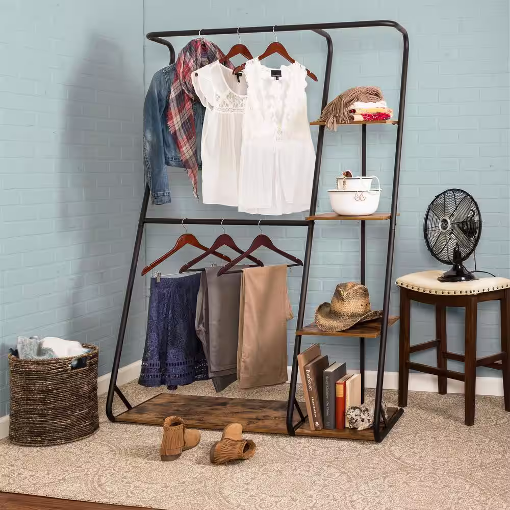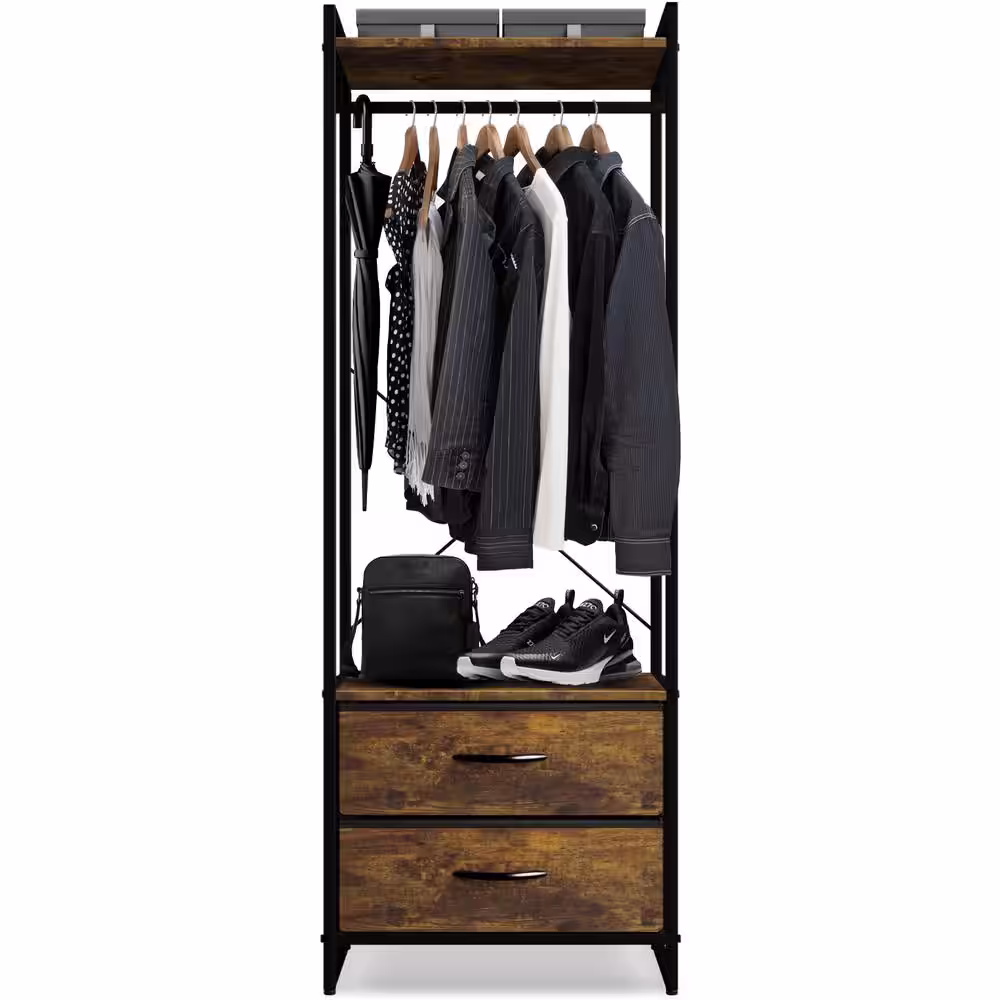 Sorbus Rustic Brown Steel Clothes Rack with Fabric Drawers and Wood Top 15.25 in. W x 70 in. H