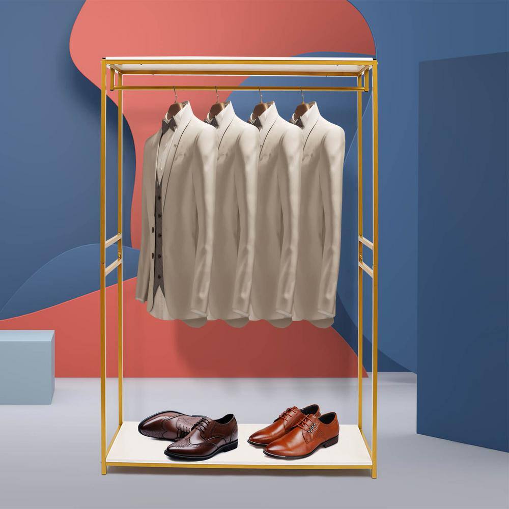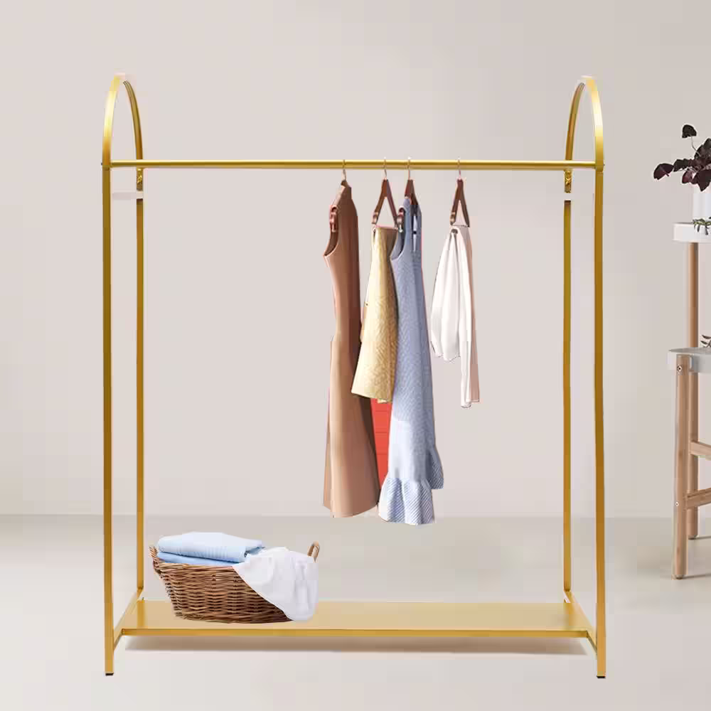 None Floor-Standing Garment Display Stand Gold Metal Clothes Rack 45.66 in. W x 59.05 in. H