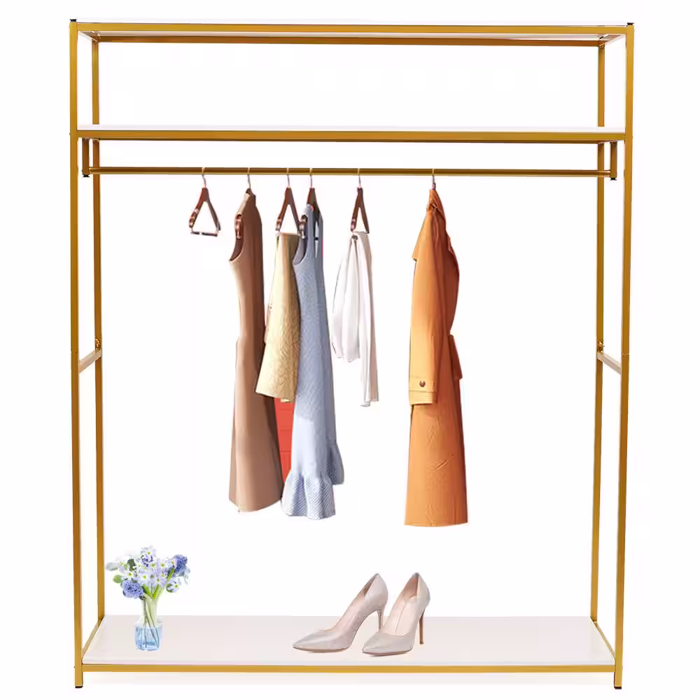 None Modern Gold Metal Clothes Rack Floor-Standing Display Rack 47.24 in. W x 62.99 in. H