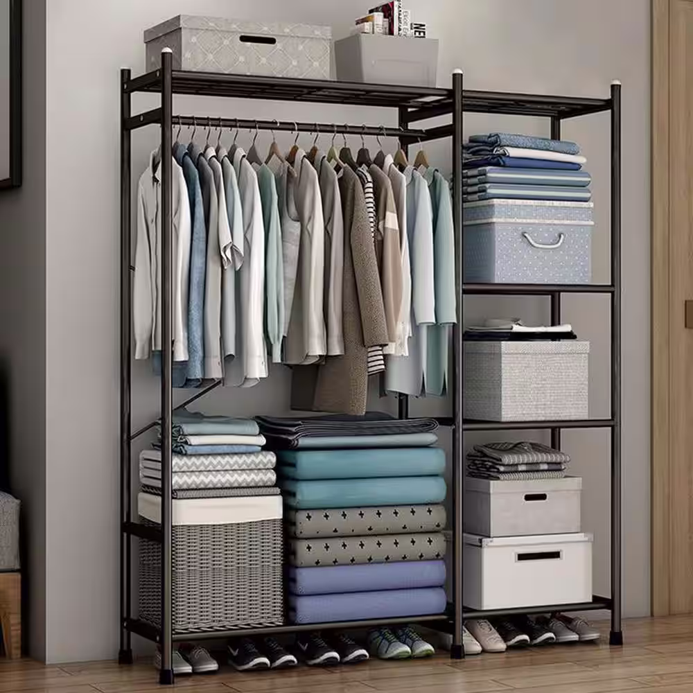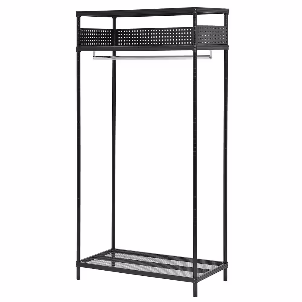 None Black Metal Garment Clothes Rack with Shelves 43 in. W x 81 in. H