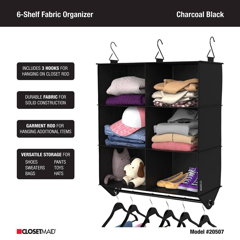 ClosetMaid 34.76 in. H Charcoal Black Fabric Hanging Closet Organizer with 6 Shelves