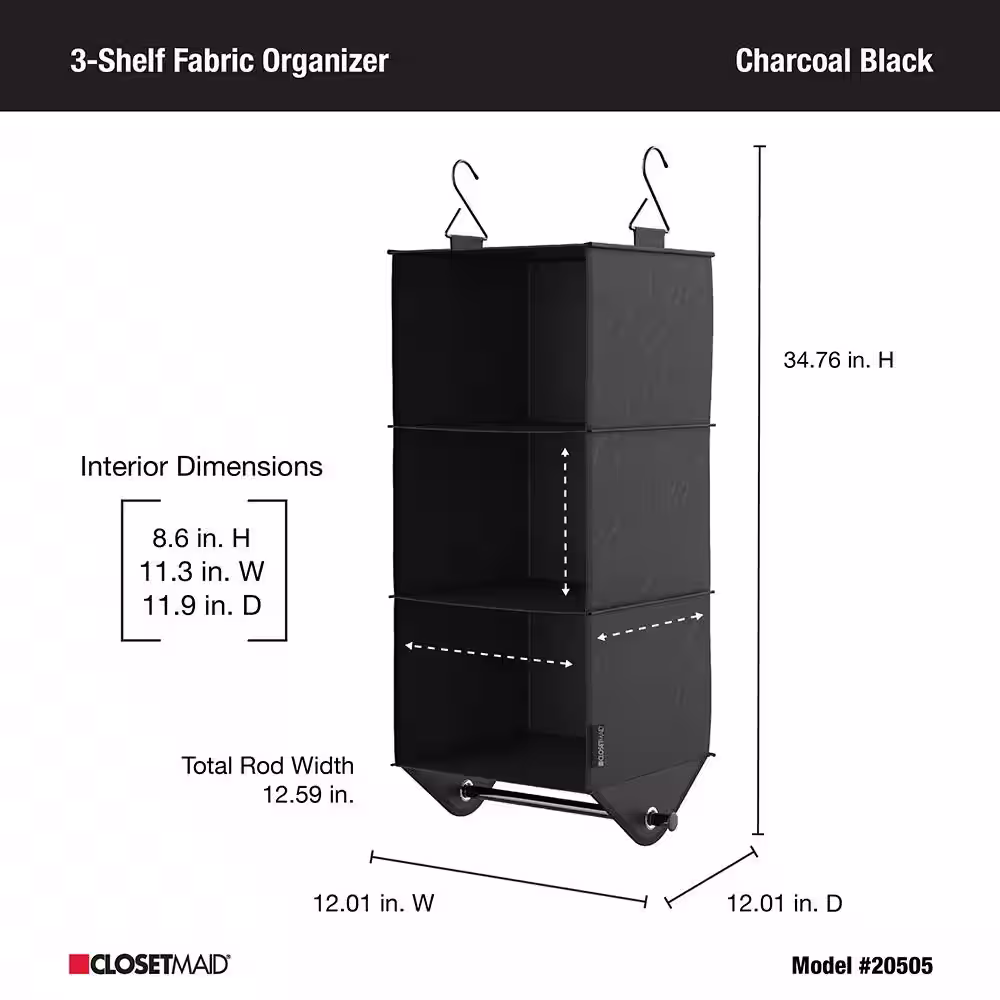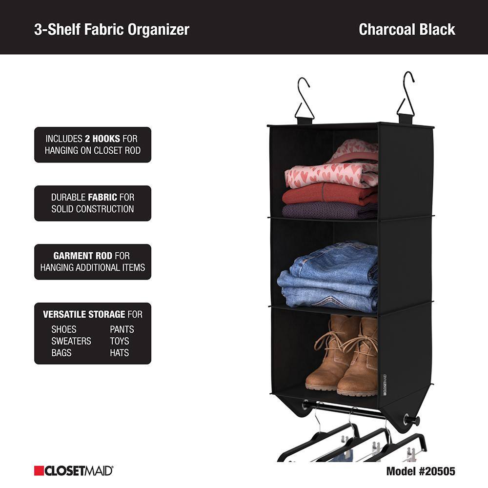 ClosetMaid 34.76 in. H Charcoal Black Fabric Hanging Closet Organizer with 3 Shelves