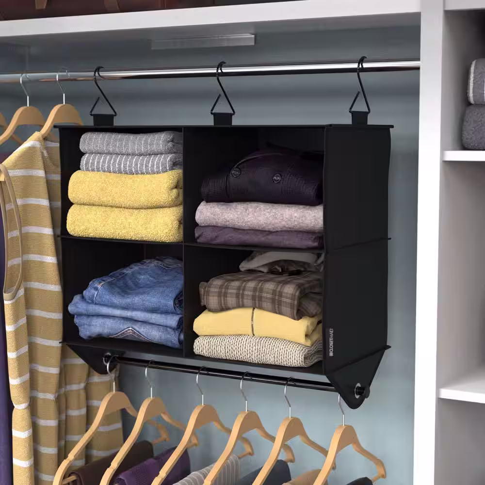 ClosetMaid 26.10 in. H Charcoal Black Fabric Hanging Closet Organizer with 4 Shelves