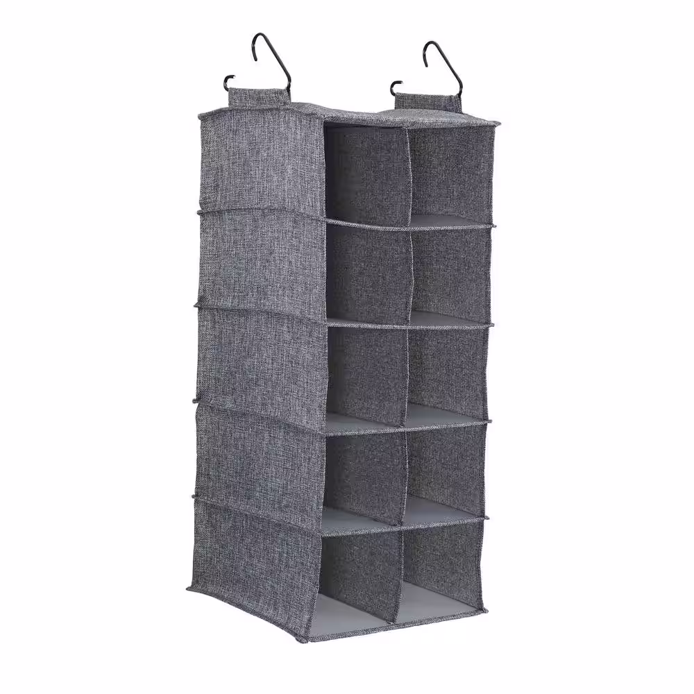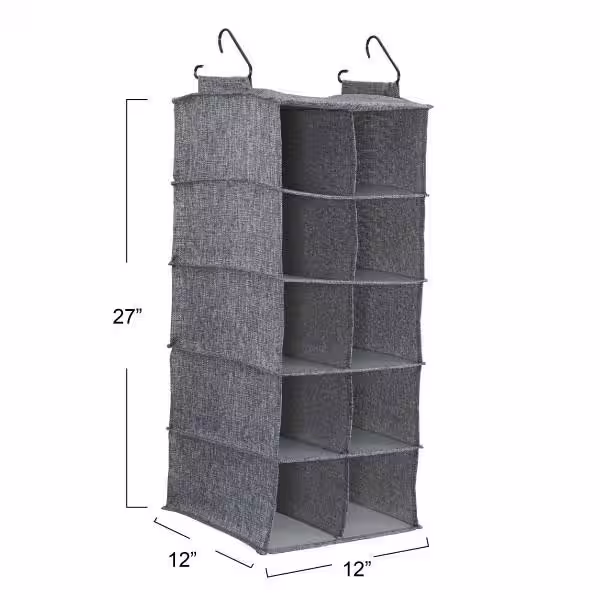 HOUSEHOLD ESSENTIALS 27 in. H 10-Pair Graphite Polyester Hanging Shoe Organizer