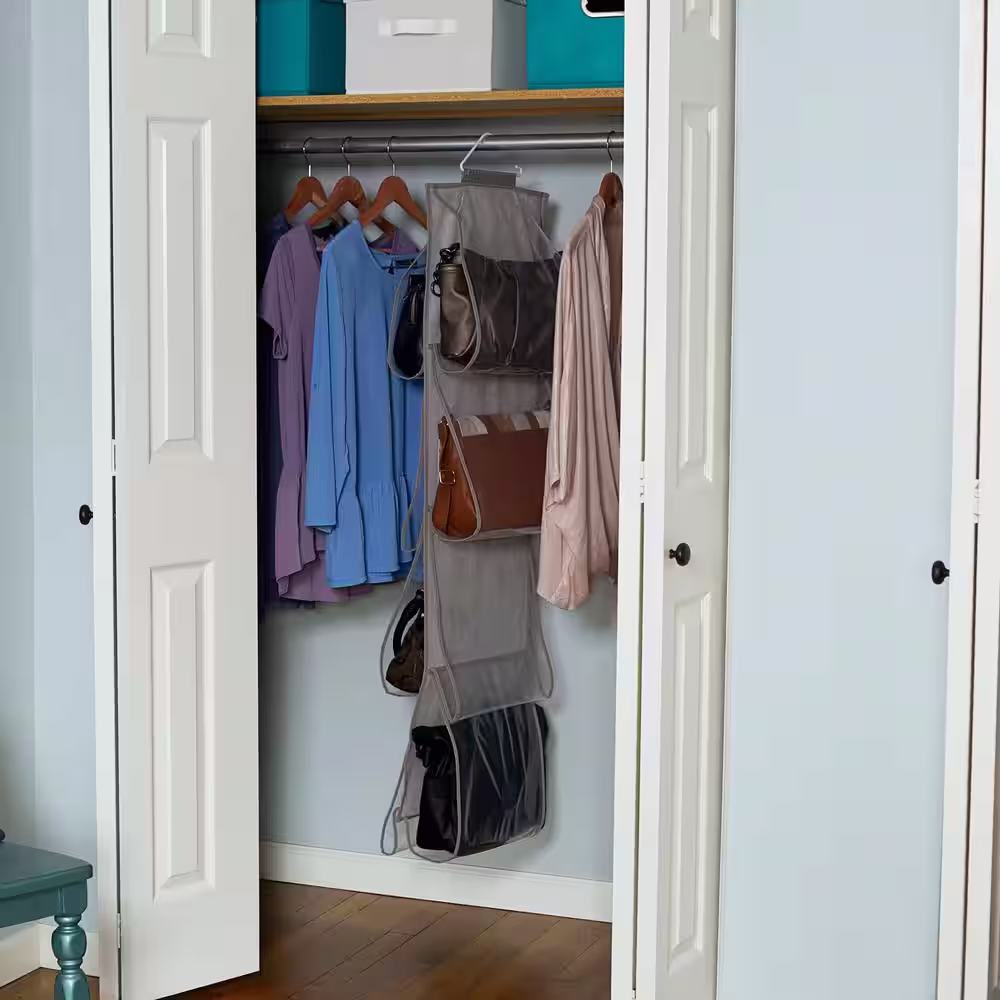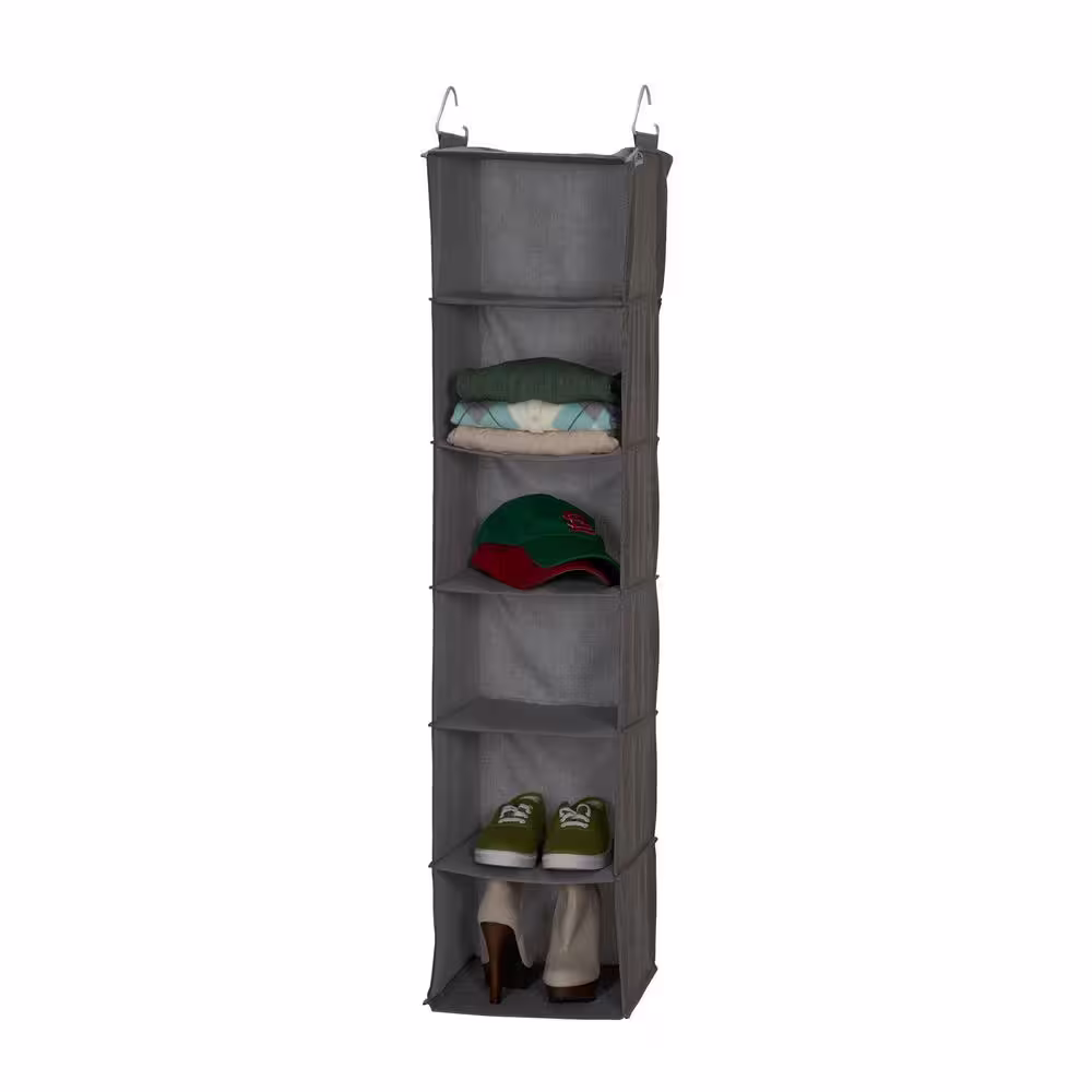 HOUSEHOLD ESSENTIALS 60 in. H 8-Pair Medium Gray Fabric Hanging Shoe Organizer