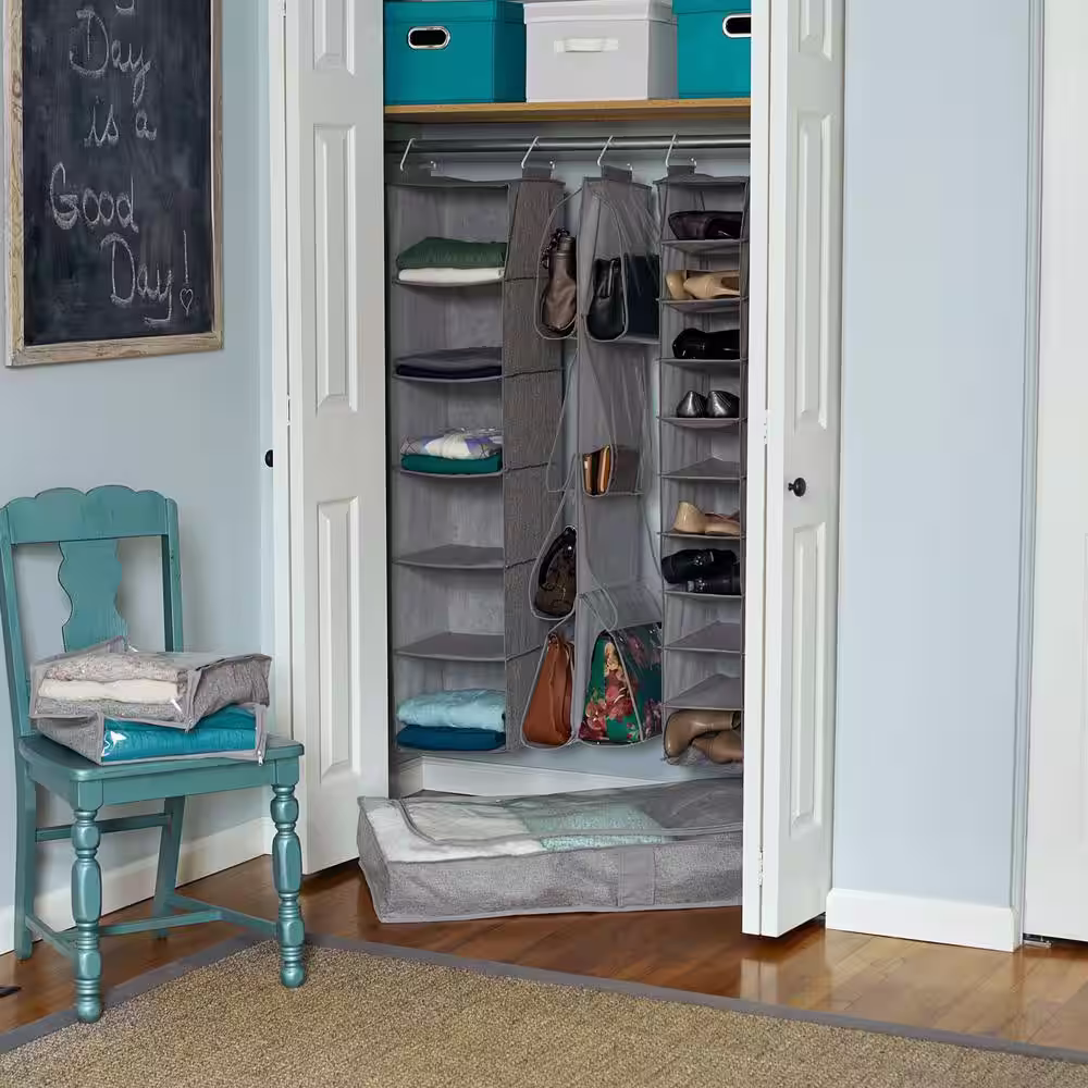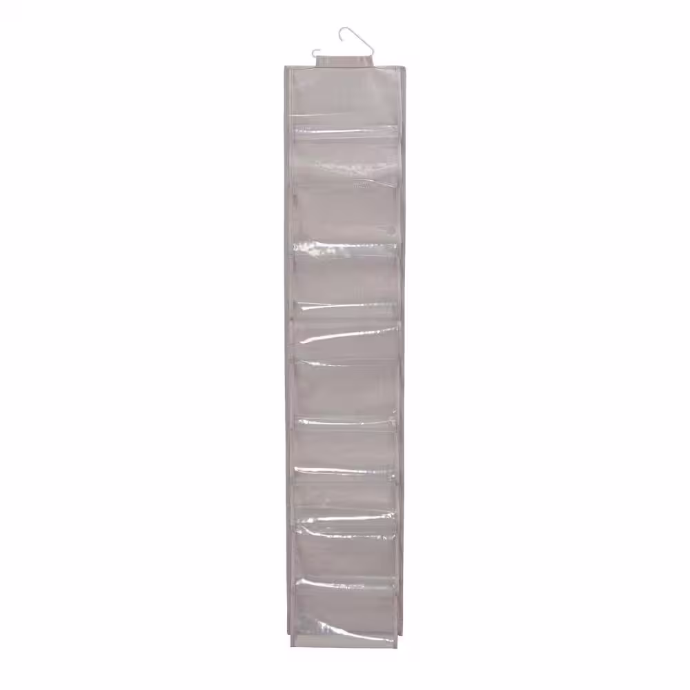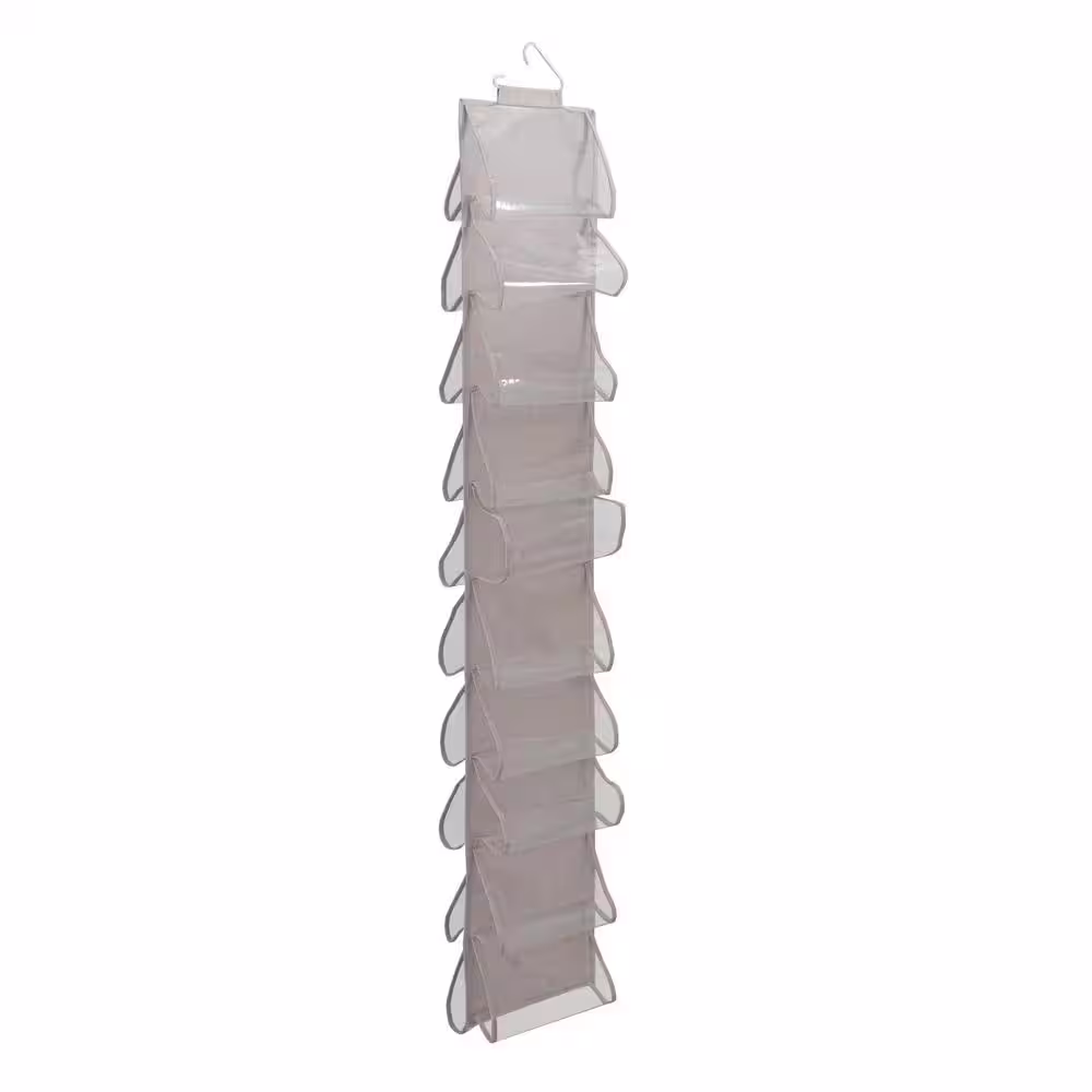 HOUSEHOLD ESSENTIALS 62 in. H 10-Pair Silver Polyester Hanging Shoe Organizer