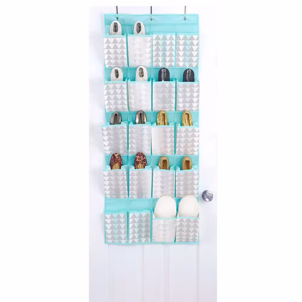 HOUSEHOLD ESSENTIALS 59.75 in. H 20-Pair Denim Blue Cotton Blend and Plastic Hanging Shoe Organizer