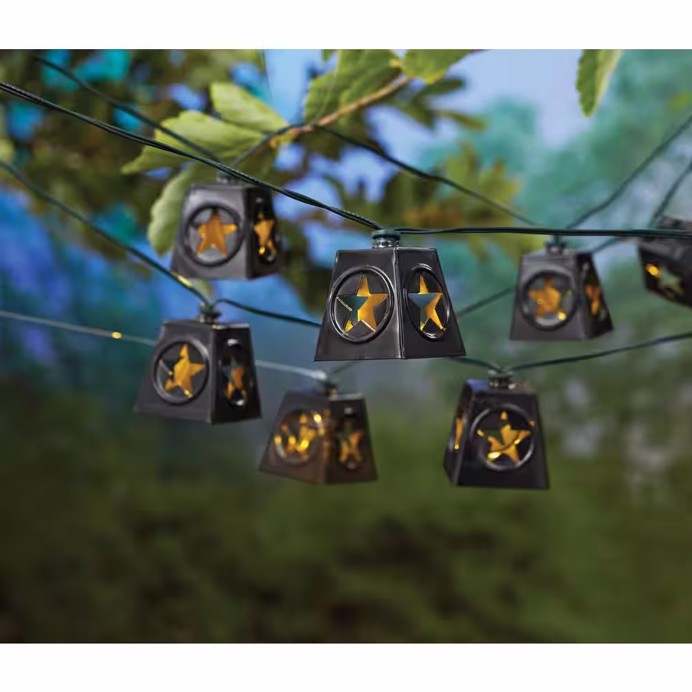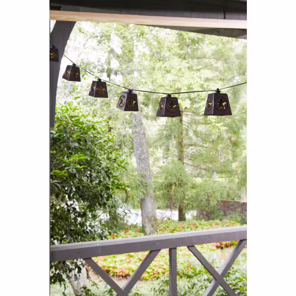 Hampton Bay 10-Light 150 in. Integrated LED Outdoor Solar String Light with Lone Star Shade