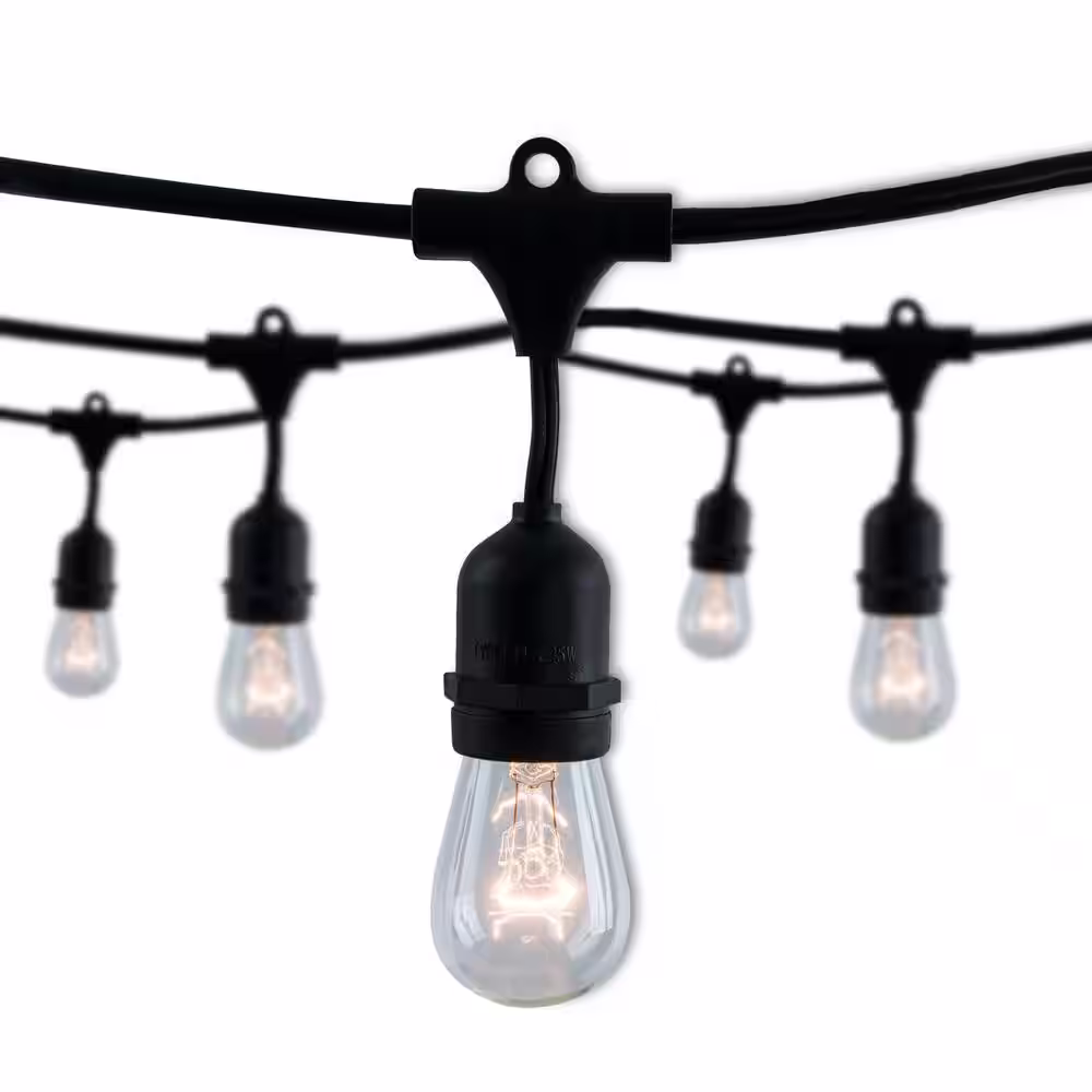 Bulbrite 12 Light 30 ft. Black Indoor/Outdoor Plug-in S14 String Light with Clear Incandescent Bulbs(2 Pack)