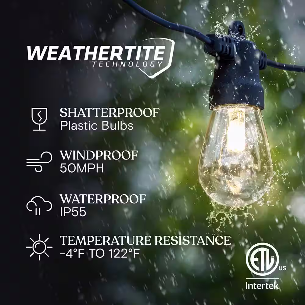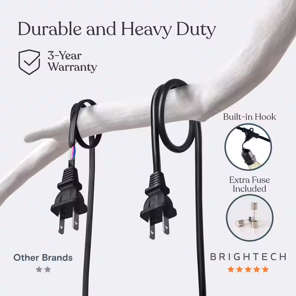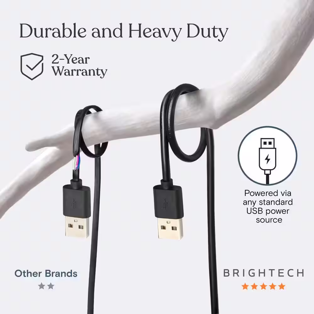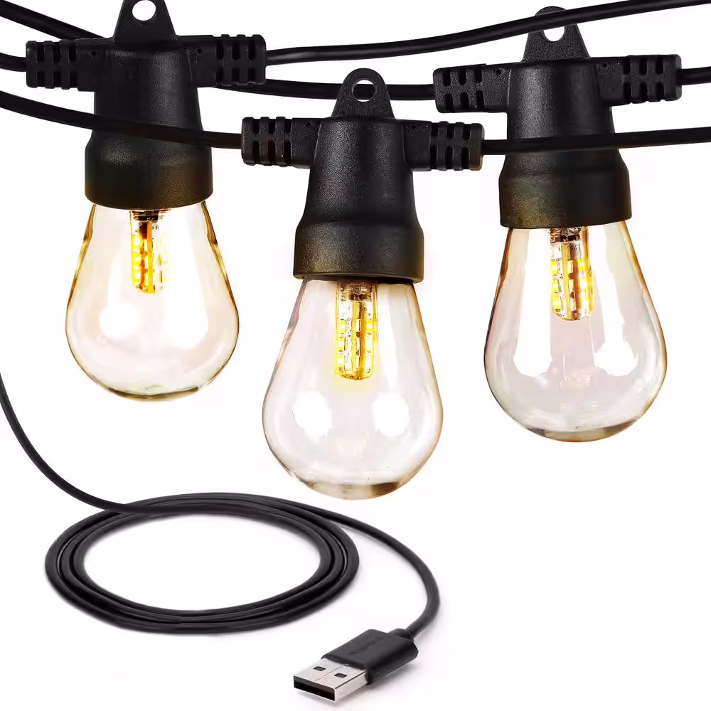 Brightech 10-Light 24.5 ft. Indoor/Outdoor USB S14 Edison Bulb Ambience Pro LED Filament String Light 3000k