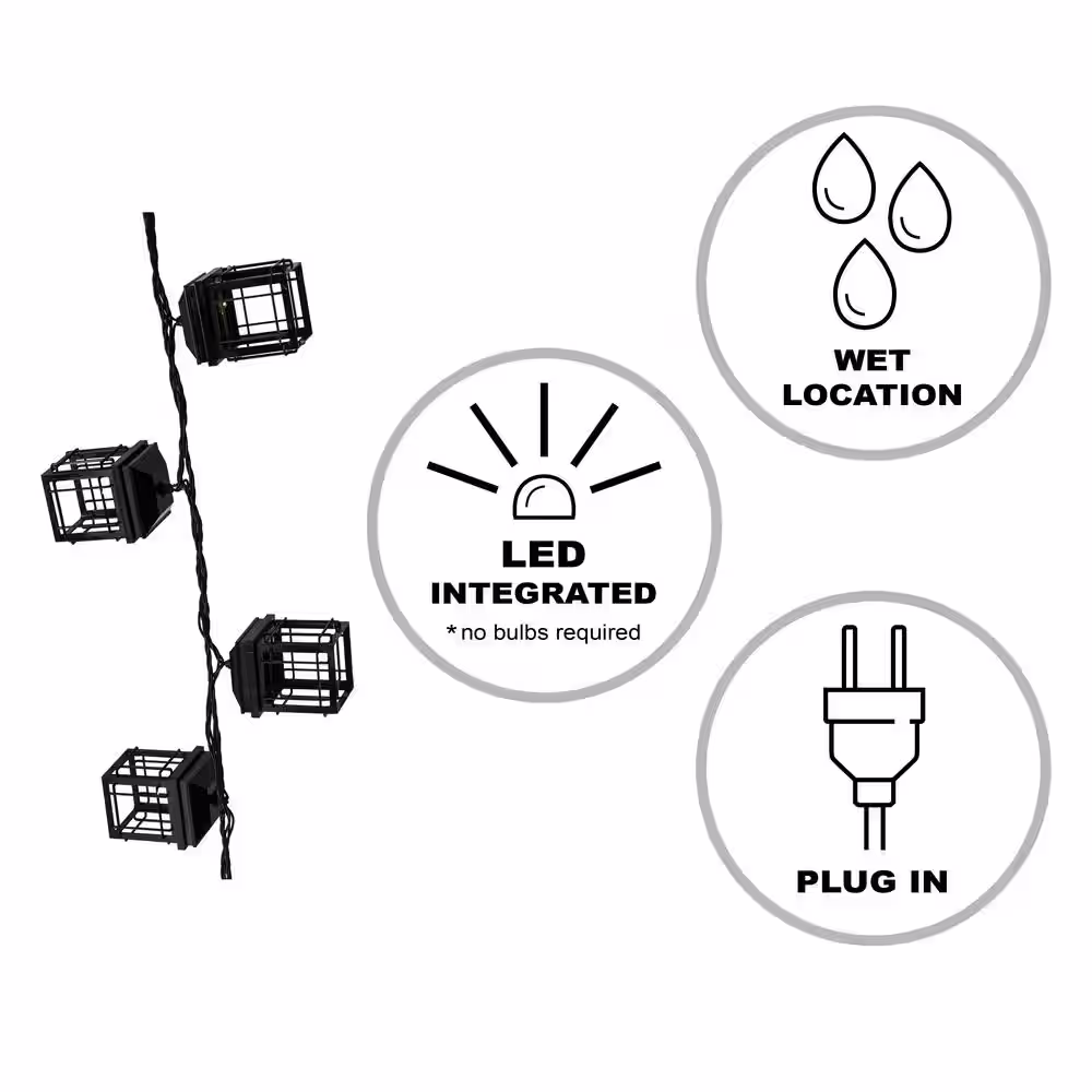 Monteaux Lighting 10-Light 10.25 ft. Black Indoor/Outdoor Plug-In Integrated LED Lantern String Light