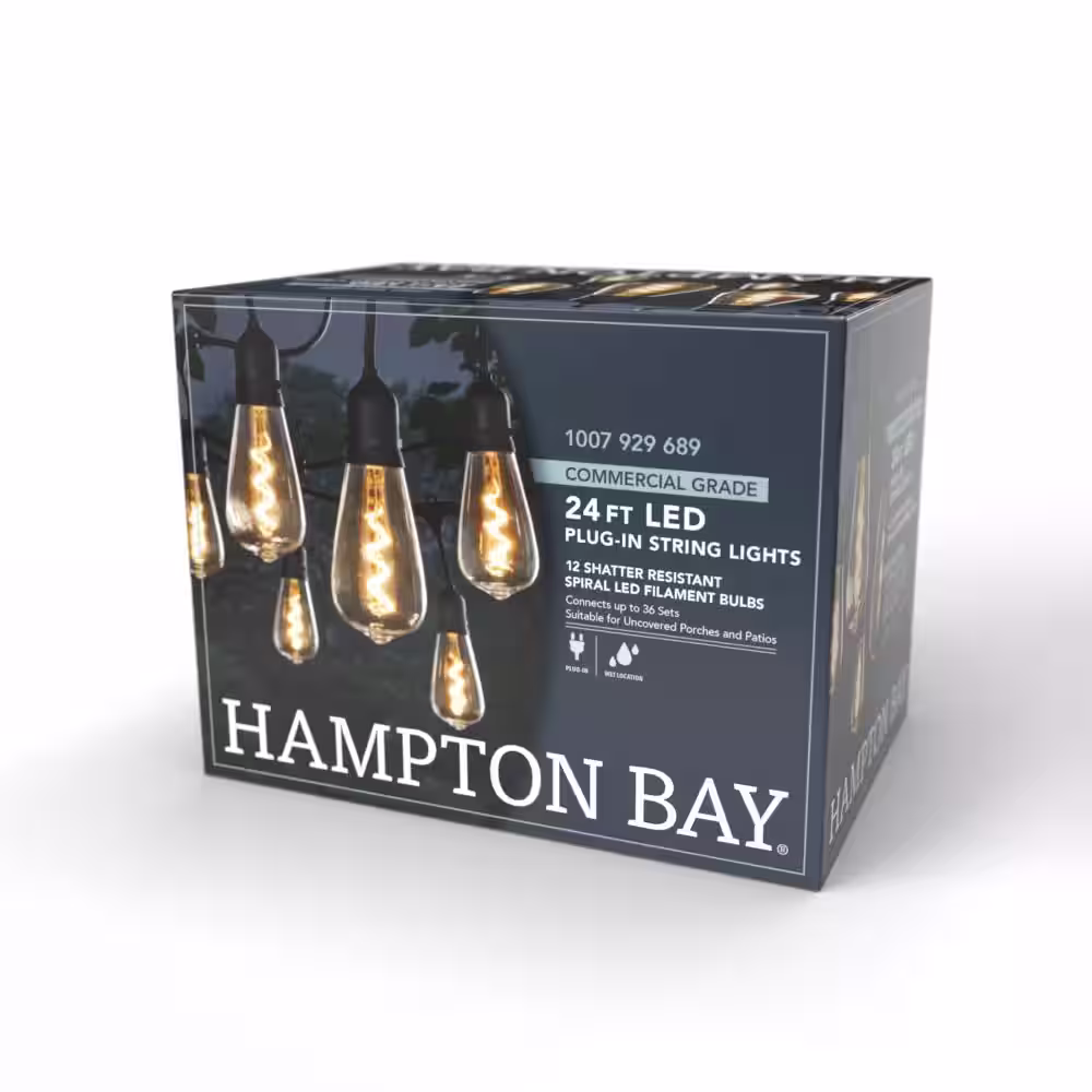 Hampton Bay 12-Light 24 ft. Indoor/Outdoor Plug-In Incandescent Edison Bulb String Light