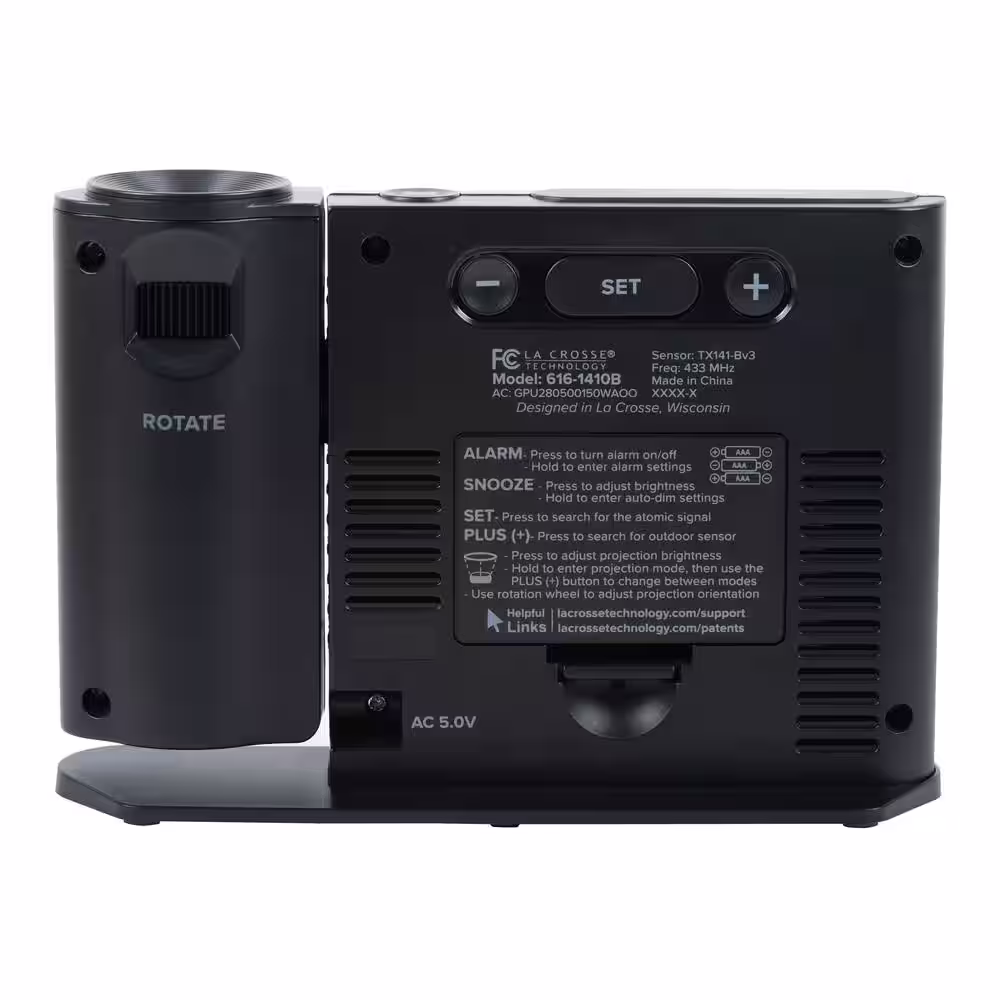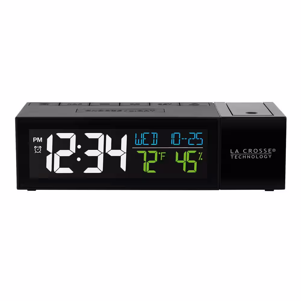 La Crosse Technology Black Atomic Projection Alarm Clock with Temperature