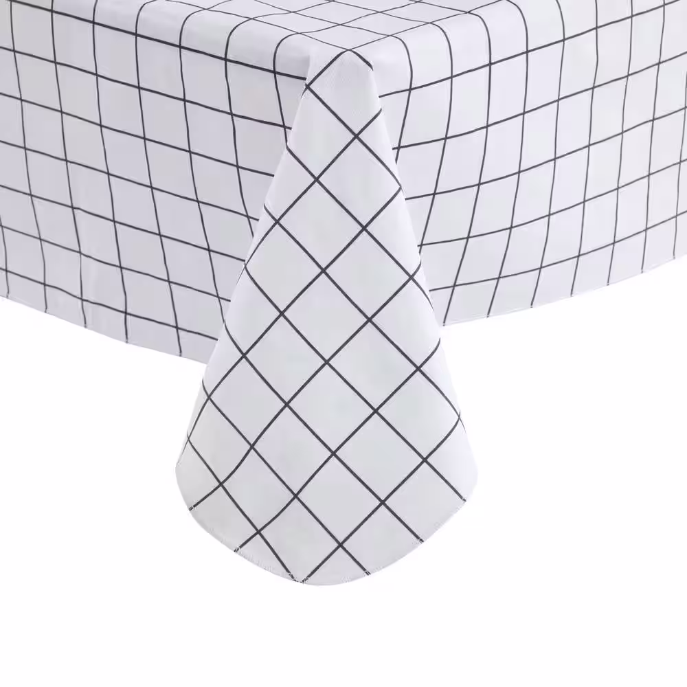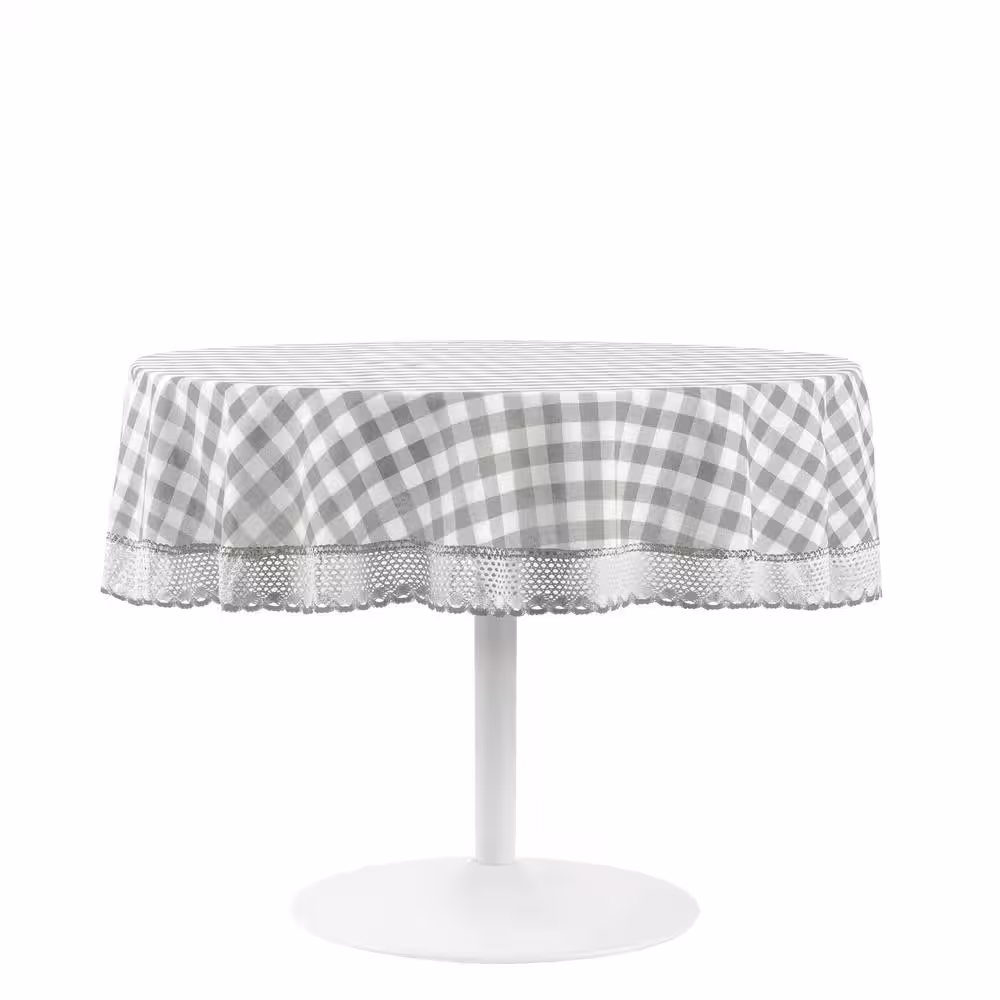 ACHIM Buffalo Check 70 in. W x 70 in. L Grey Checkered Polyester/Cotton Round Tablecloth