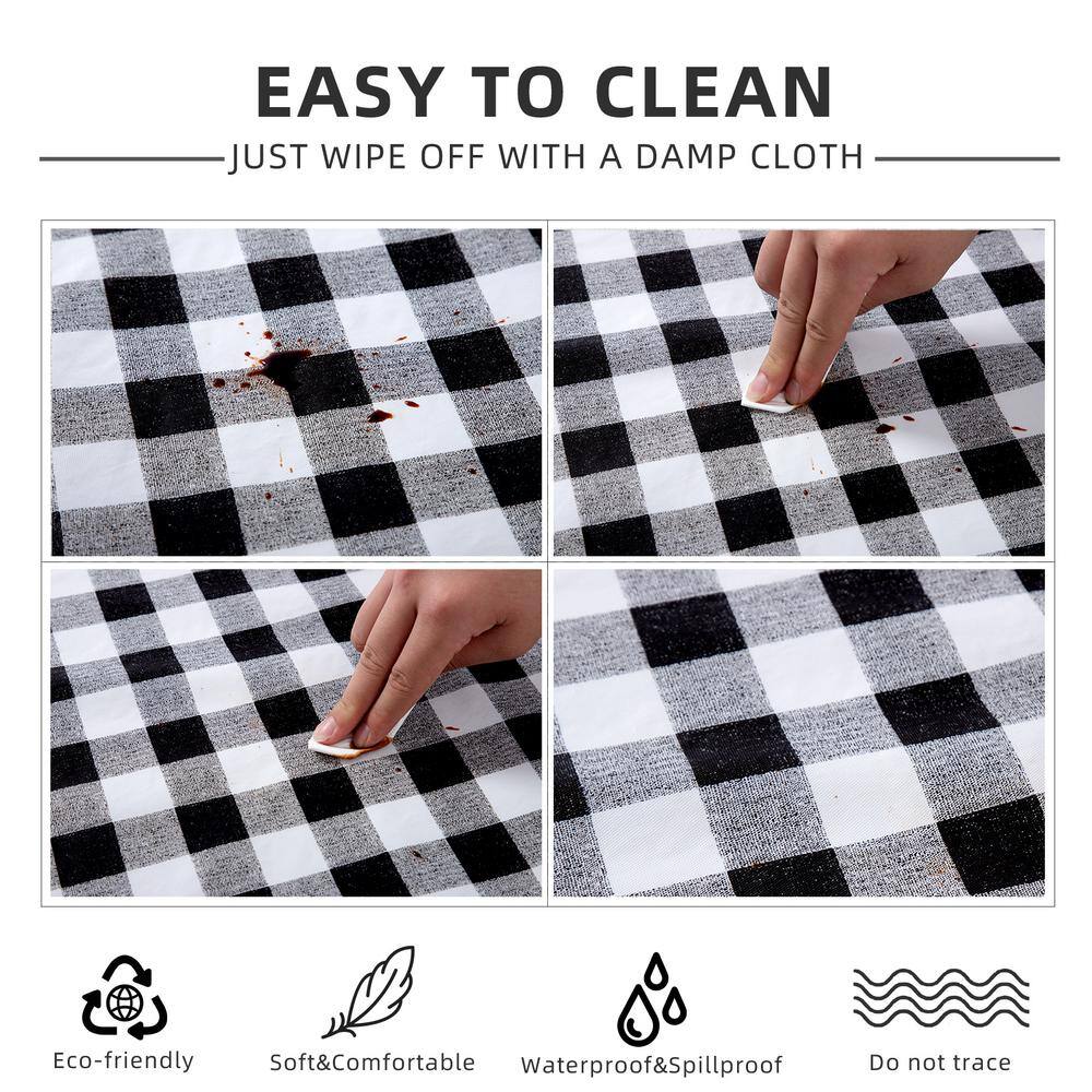 None Raystar 60 in. x 84 in. Black and White Plaid PEVA Tablecloth Vinyl Tablecloth Party