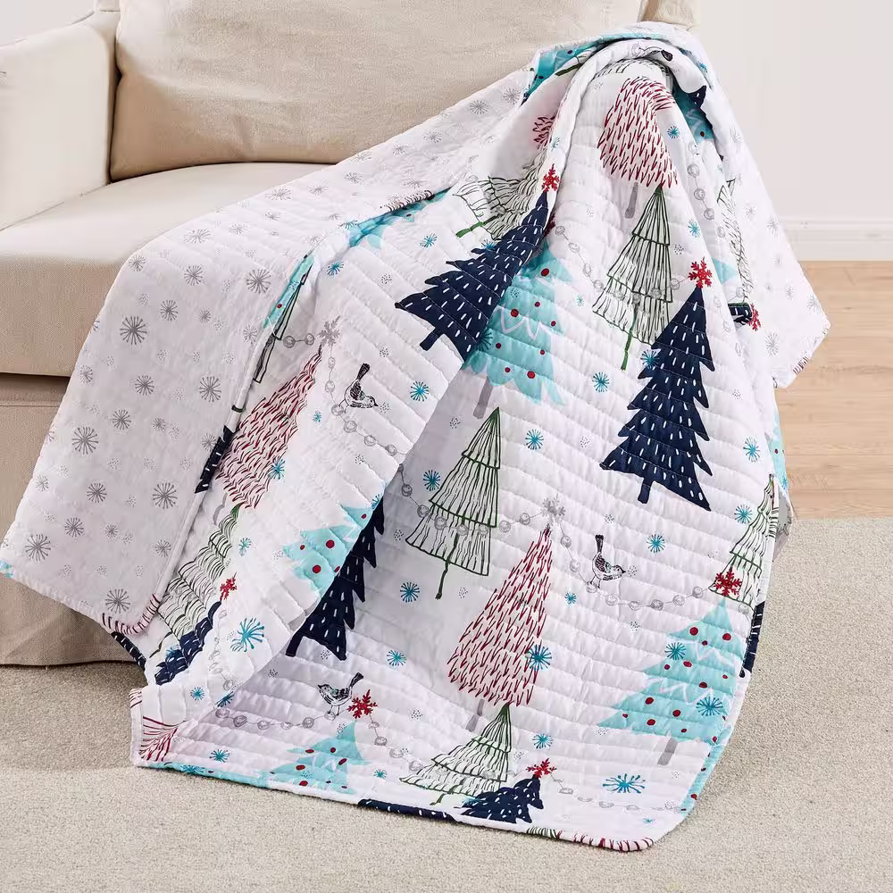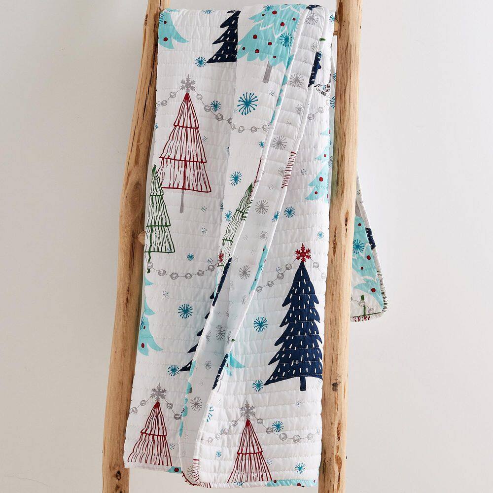 None White Pine Multicolor Christmas Three Quilted Microfiber Throw Blanket