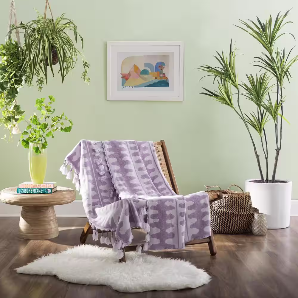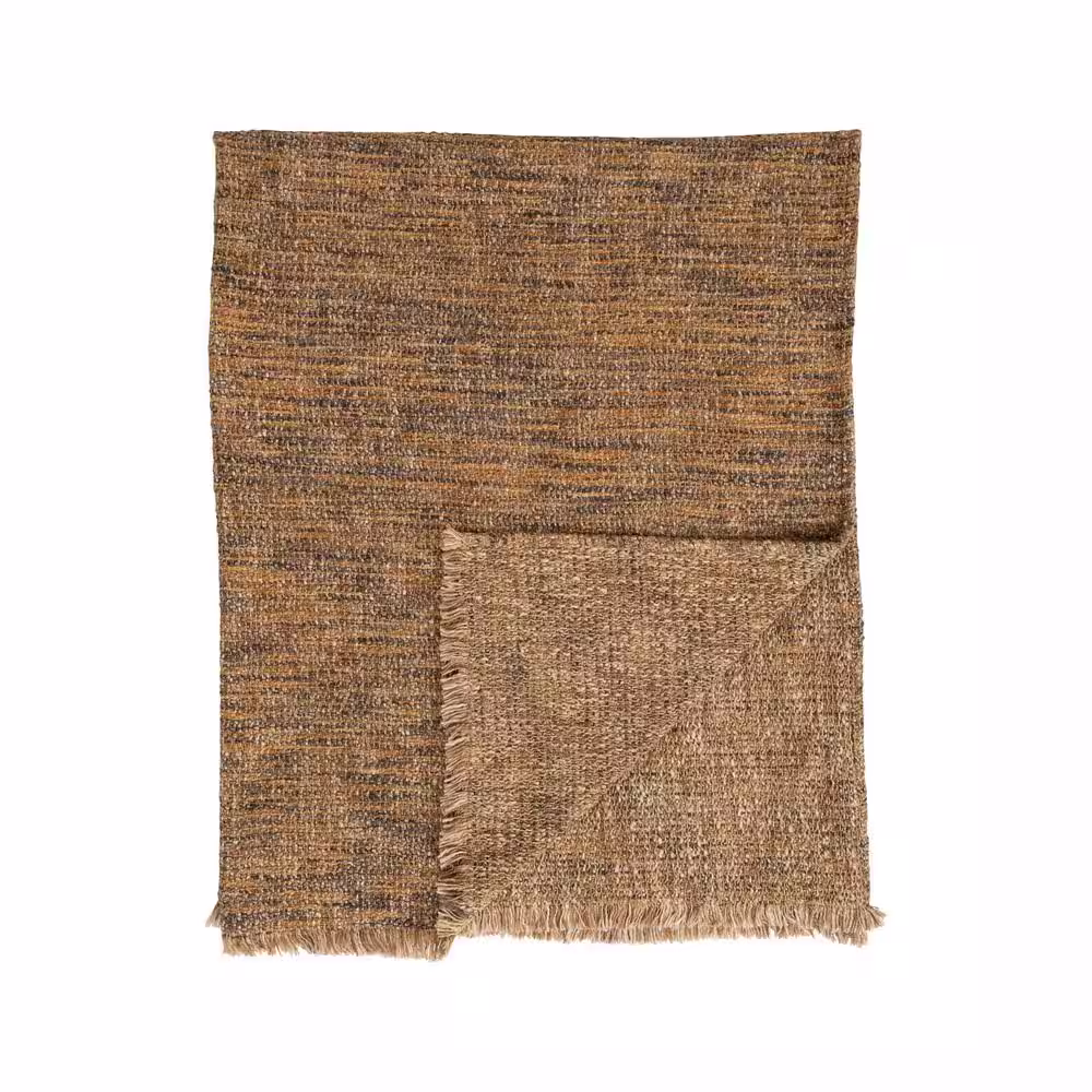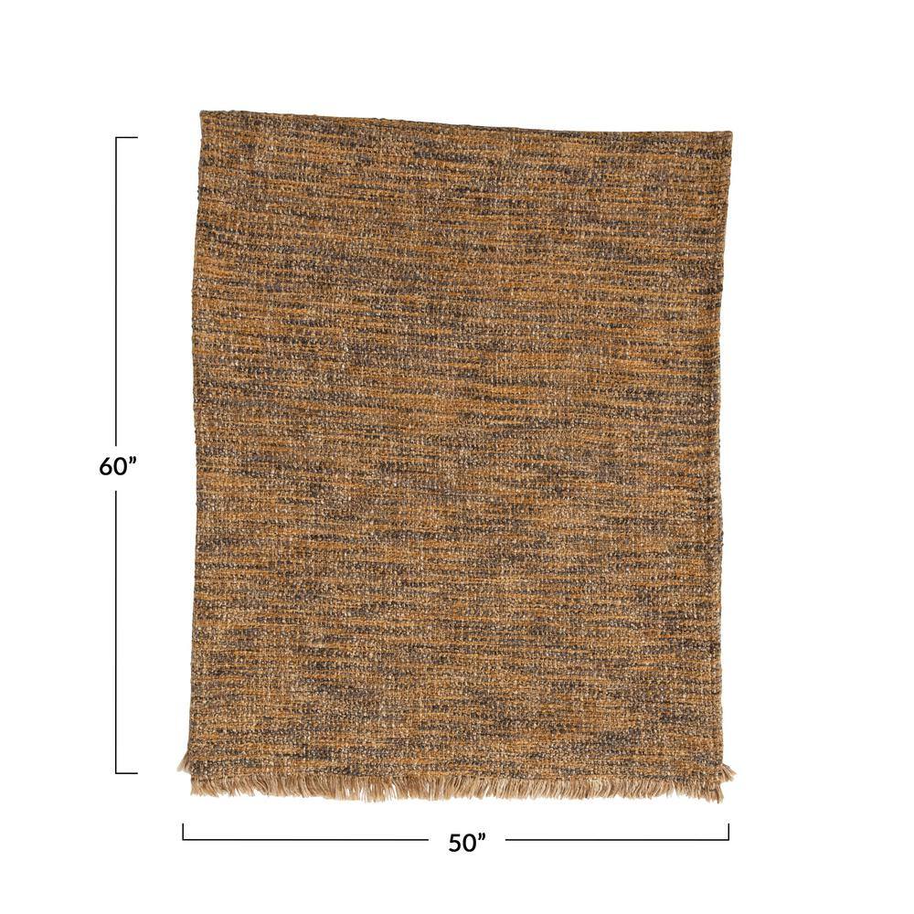 Storied Home Woven Melange Cotton Brown Colored Blend Boucle Throw with Fringe