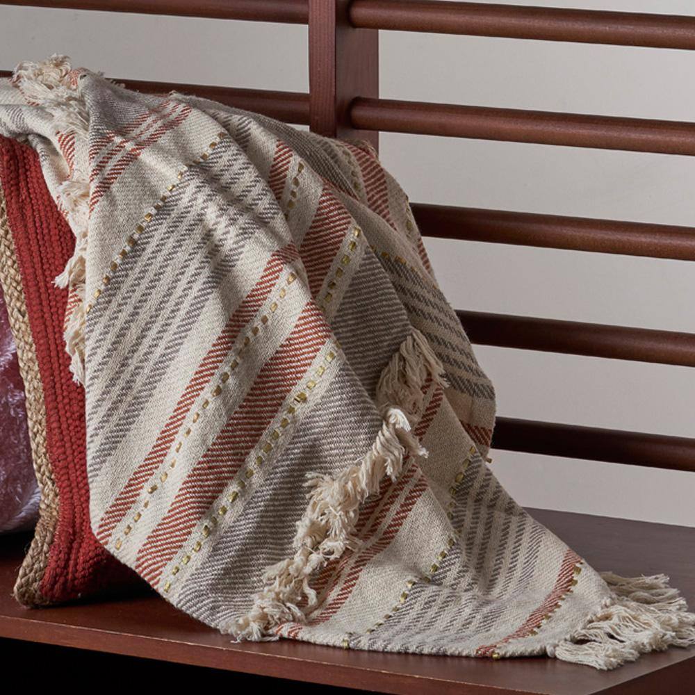 LR Home Gemma Stripes and Lines Contemporary Rust / Grey Cotton Blend Throw