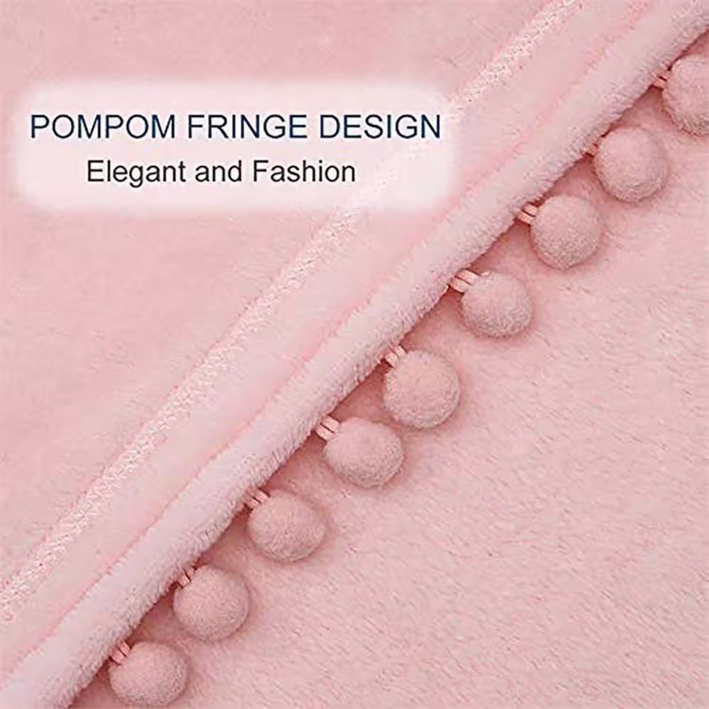 None Misty Pink 60 in. x 80 in. Lightweight Soft Microfiber Throw Blanket with Pom Pom Fringe
