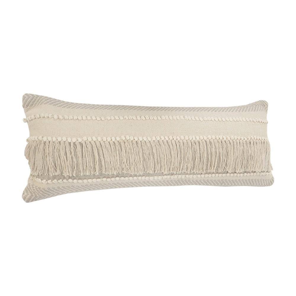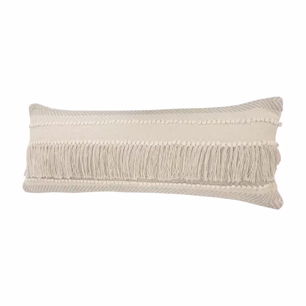 LR Home Eleanor Cottage Beige Fringed Over-Tufted Soft Poly-Fill 14 in. x 36 in. Throw Pillow