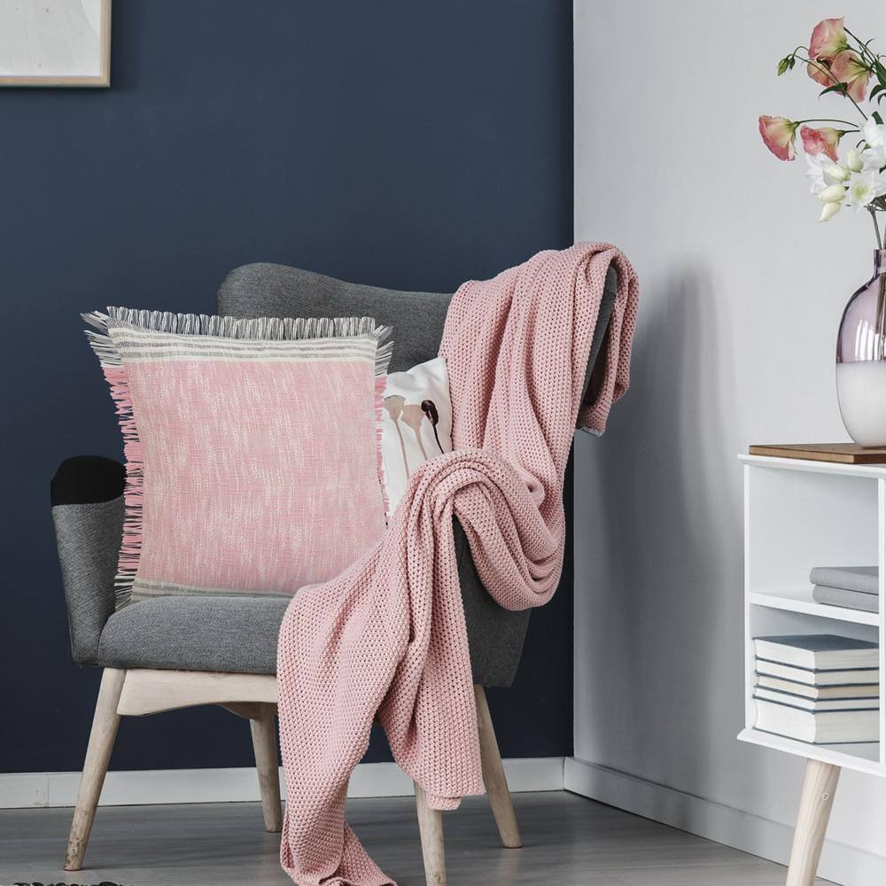 LR Home Angelica Pink / Gray Striped Fringed Casual Soft Poly-fill 20 in. x 20 in. Throw Pillow