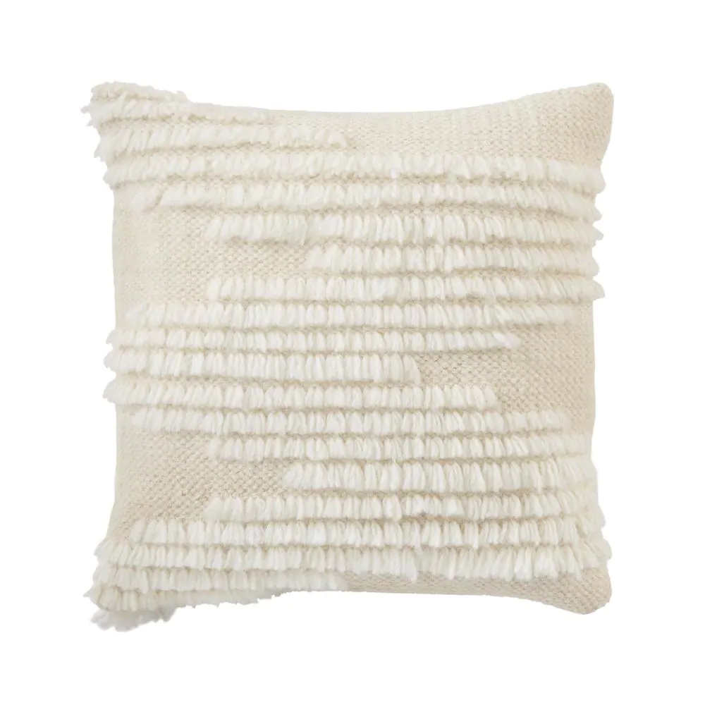 Home Decorators Collection Cream Fringe Textured 18 in. x 18 in. Square Decorative Throw Pillow