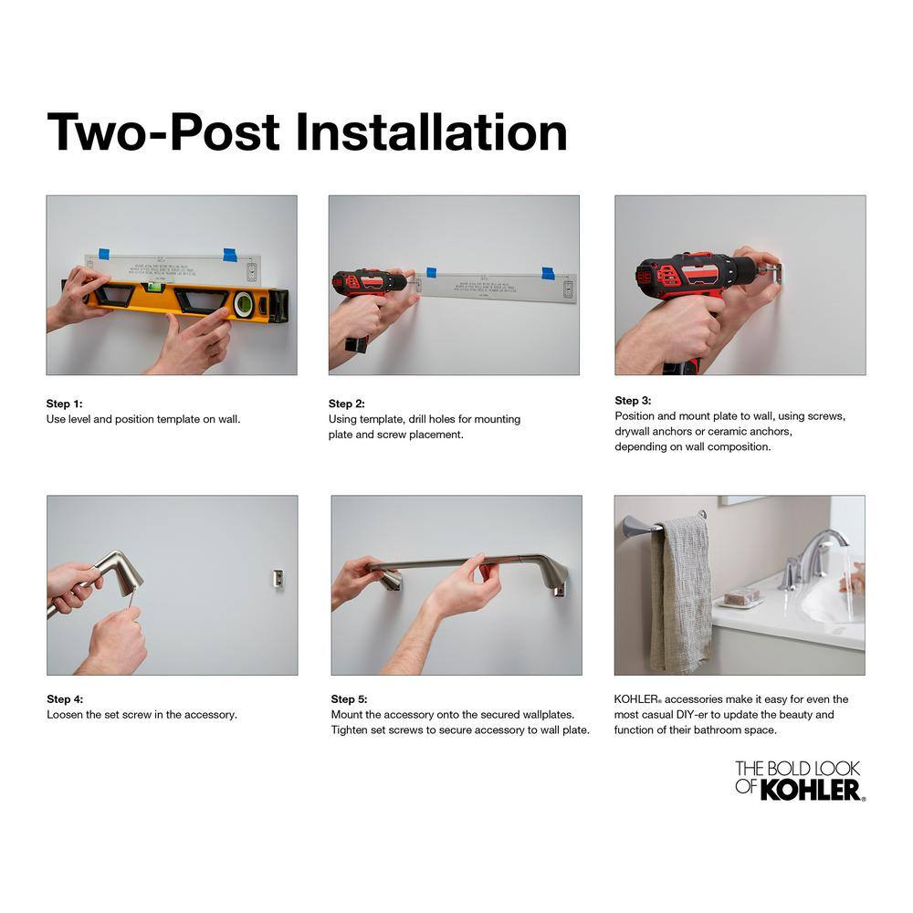 KOHLER Forte Sculpted Wall-Mount Double Post Toilet Paper Holder in Vibrant Brushed Nickel