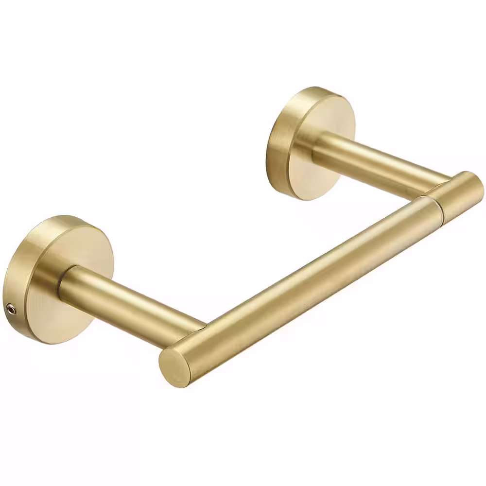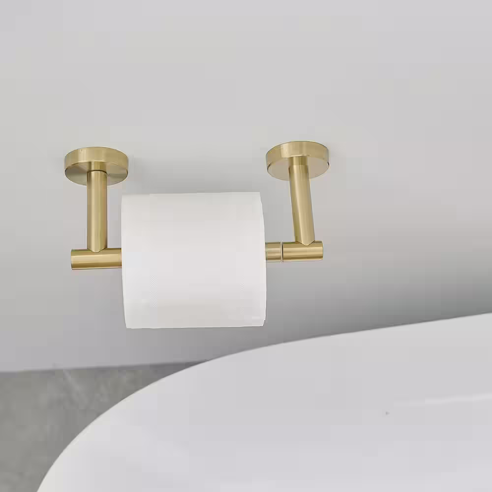 BWE Double Post Pivoting Wall Mounted Towel Bar Toilet Paper Holder in Brushed Gold