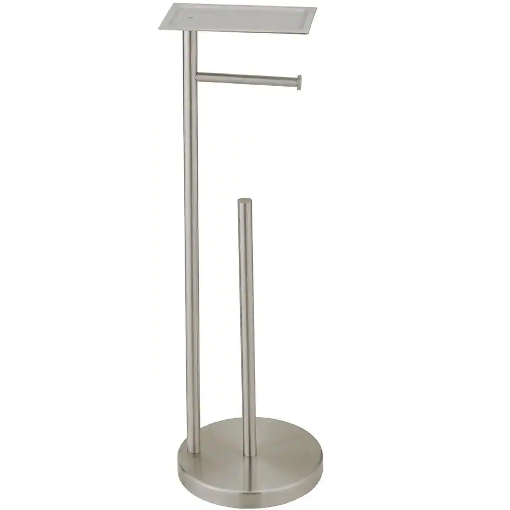 BWE Round Free Standing Toilet Paper Holder with Top Storage Shelf in Brushed Nickel