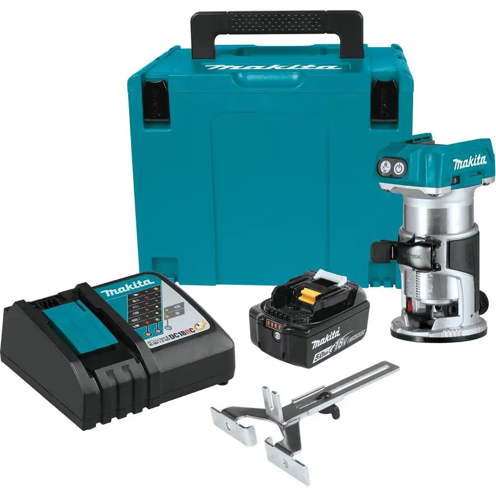 Makita 18V LXT Lithium-Ion Brushless Cordless Compact Router Fixed Base Starter Kit (5.0 Ah)