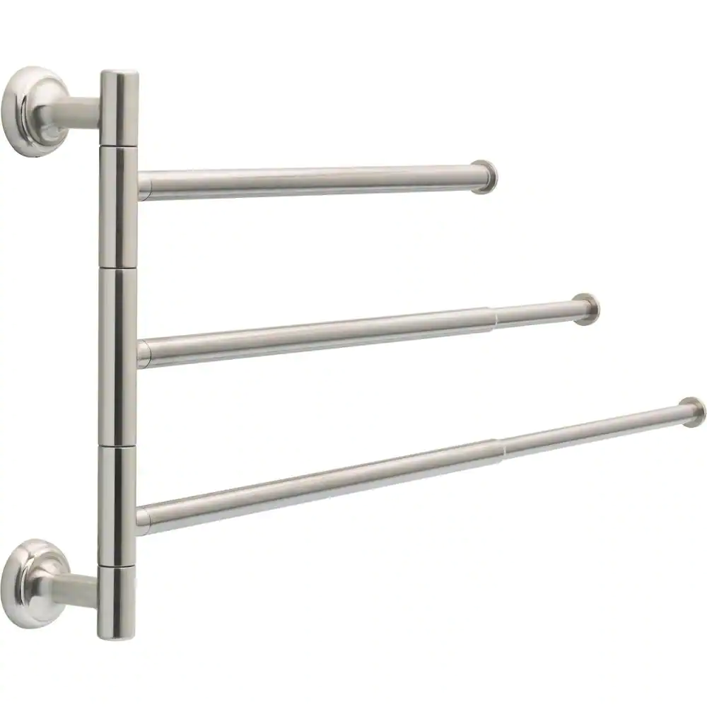Delta Extensions Pivoting Extendable 3-Arm Wall Mount Towel Bar Bath Hardware Accessory in Brushed Nickel